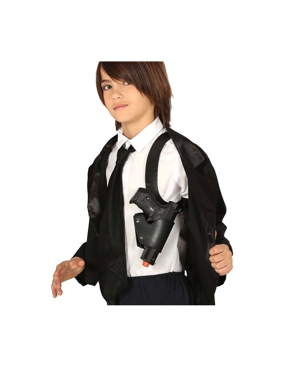 Fondina ascellare con pistola giocattolo, perfetta per completare costumi da agente segreto, detective, sceriffo o personaggi d'azione. Il set include la fondina regolabile che si indossa sotto la giacca e una pistola finta. L'accessorio si adatta comodamente sotto le braccia con cinghie elastiche, permettendo di estrarre l'arma con un gesto scenografico. Fondina in materiale resistente di colore nero, pistola in plastica con dettagli realistici.