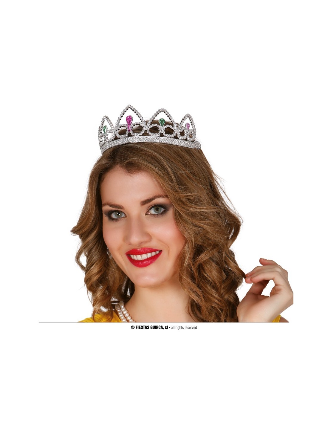Trasformati in una vera regina con questa elegante coroncina argentata decorata con strass scintillanti e dettagli colorati. La corona presenta una struttura in metallo con finitura argento lucido e pietre colorate che creano un effetto regale perfetto per ogni occasione speciale. Il design presenta punte decorative con incastonate gemme rosa e cristalli trasparenti che catturano la luce. La coroncina si adatta comodamente alla testa grazie alla sua forma ergonomica.