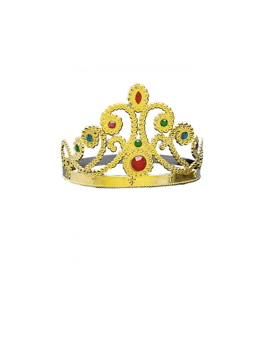 Questa splendida corona dorata con gemme colorate è l'accessorio perfetto per trasformarti in una vera regina o principessa. Realizzata in materiale dorato con decorazioni di pietre rosse, verdi e blu, presenta un design regale con motivi ornamentali elaborati. La corona viene fornita in pratica busta con cavalletto per conservarla al meglio. Si adatta comodamente alla testa grazie alla sua forma flessibile e garantisce un look maestoso per ogni occasione.