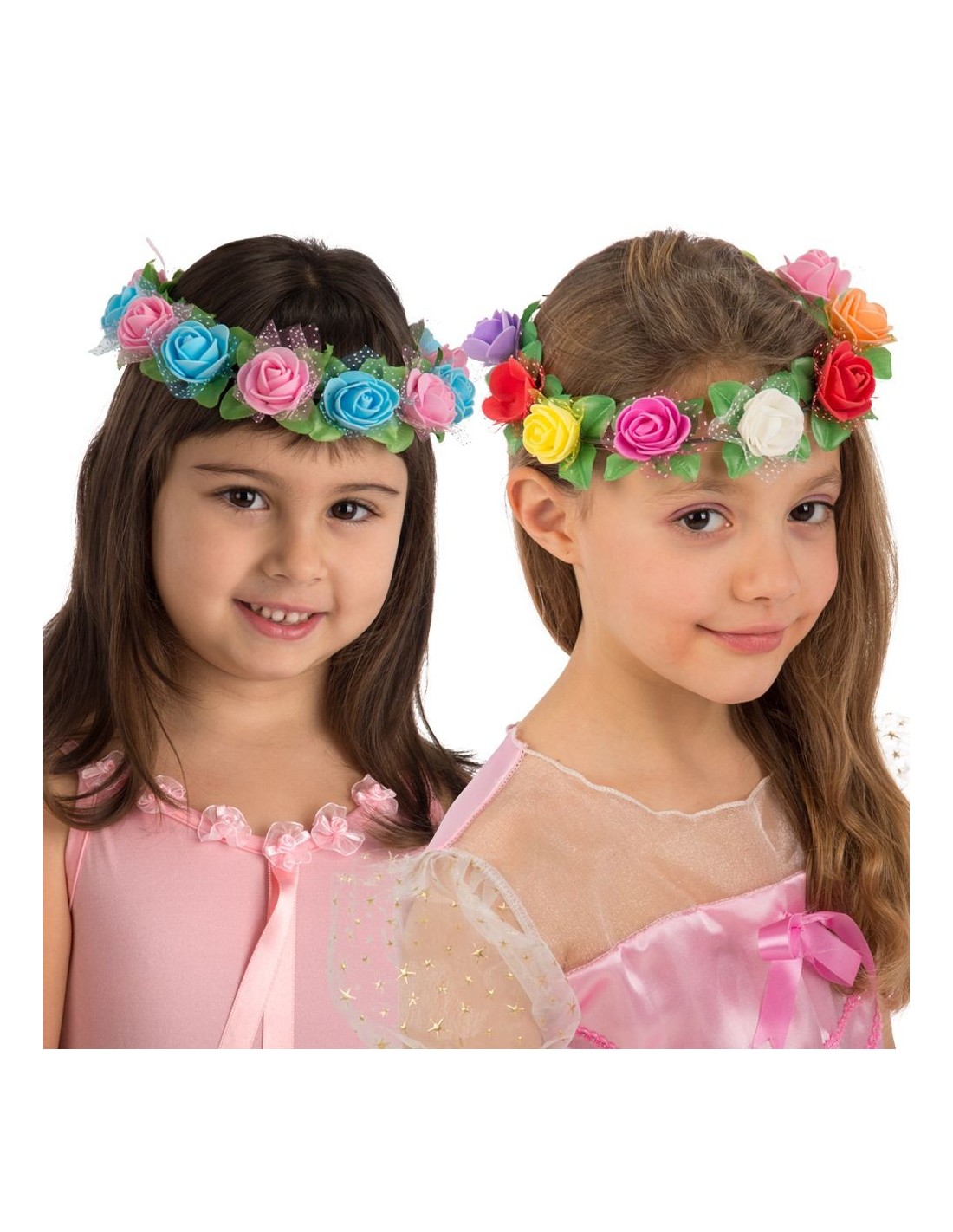 Questa graziosa coroncina è decorata con piccoli fiori multicolori che creano un effetto delizioso e festoso. Realizzata con fiori artificiali in tessuto e materiali sintetici, presenta una varietà di colori vivaci tra cui rosa, blu, giallo, rosso e verde. La coroncina è flessibile e si adatta comodamente alla testa, perfetta per completare costumi da ninfa, fata, hippie o principessa dei fiori. L'accessorio è leggero e comodo da indossare per tutta la durata della festa.