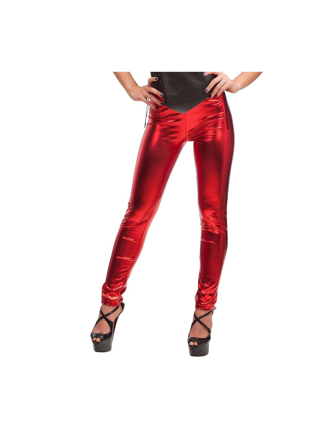 Questi leggings rossi in tessuto elasticizzato lucido sono l'accessorio perfetto per creare look audaci e accattivanti. Il materiale metallizzato dona un effetto scintillante che cattura la luce, mentre la vestibilità aderente valorizza la silhouette. Disponibili in taglia unica, si adattano comodamente grazie al tessuto stretch di qualità. I leggings sono venduti singolarmente senza altri accessori inclusi nel set.