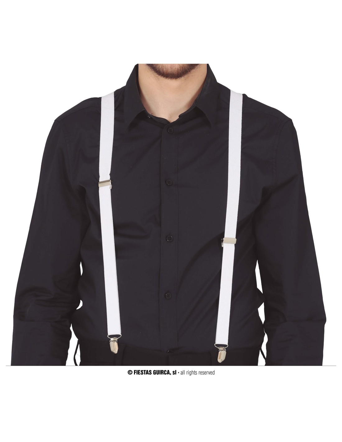 Le bretelle bianche sono l'accessorio indispensabile per completare numerosi look e costumi. Realizzate in materiale resistente ed elastico, garantiscono comfort e vestibilità durante tutto l'utilizzo. Queste bretelle si adattano facilmente a diverse corporature e si abbinano perfettamente a pantaloni, gonne e costumi di vario genere. Il colore bianco neutro le rende versatili per molteplici combinazioni di stile.