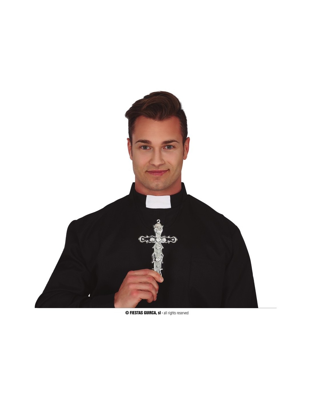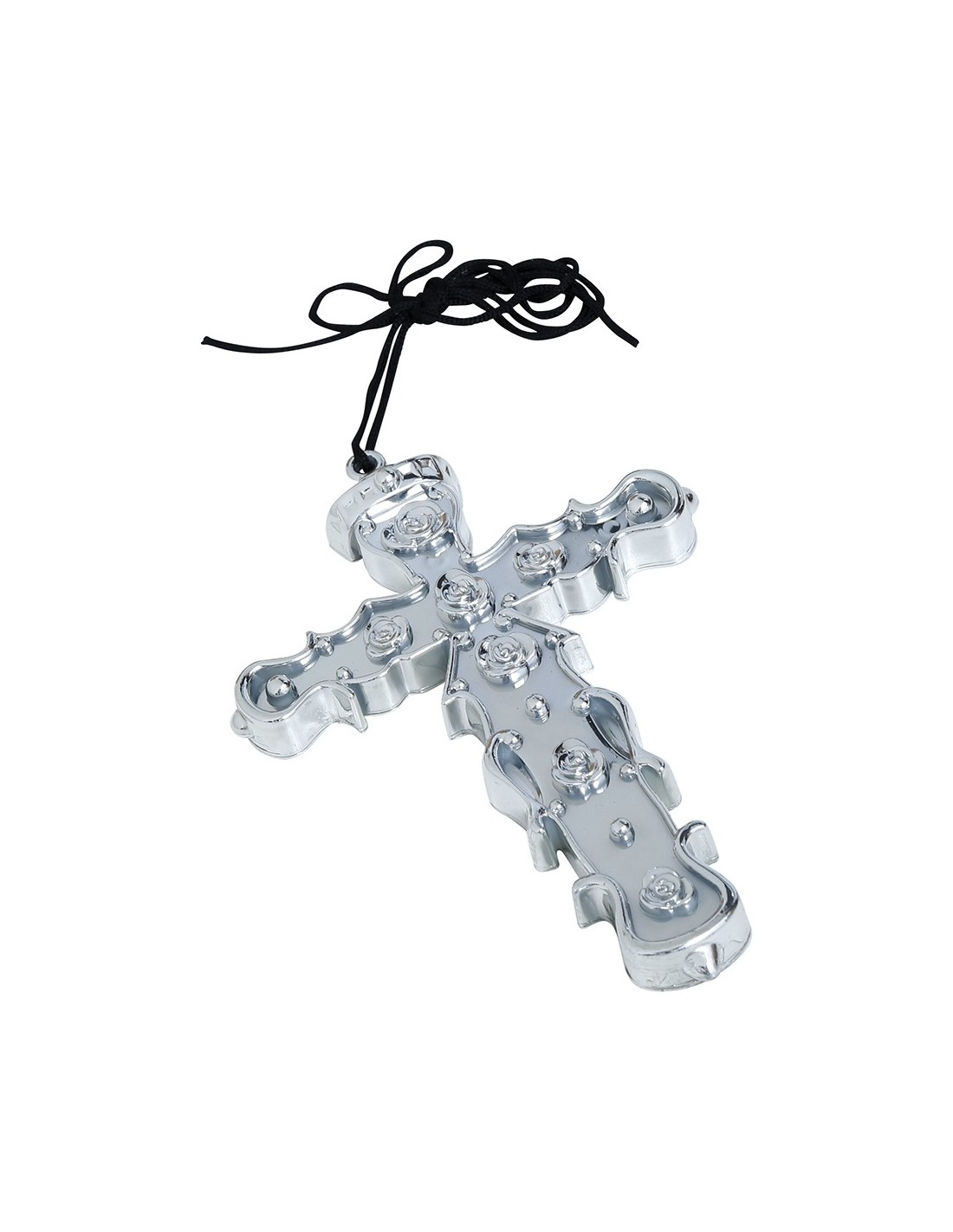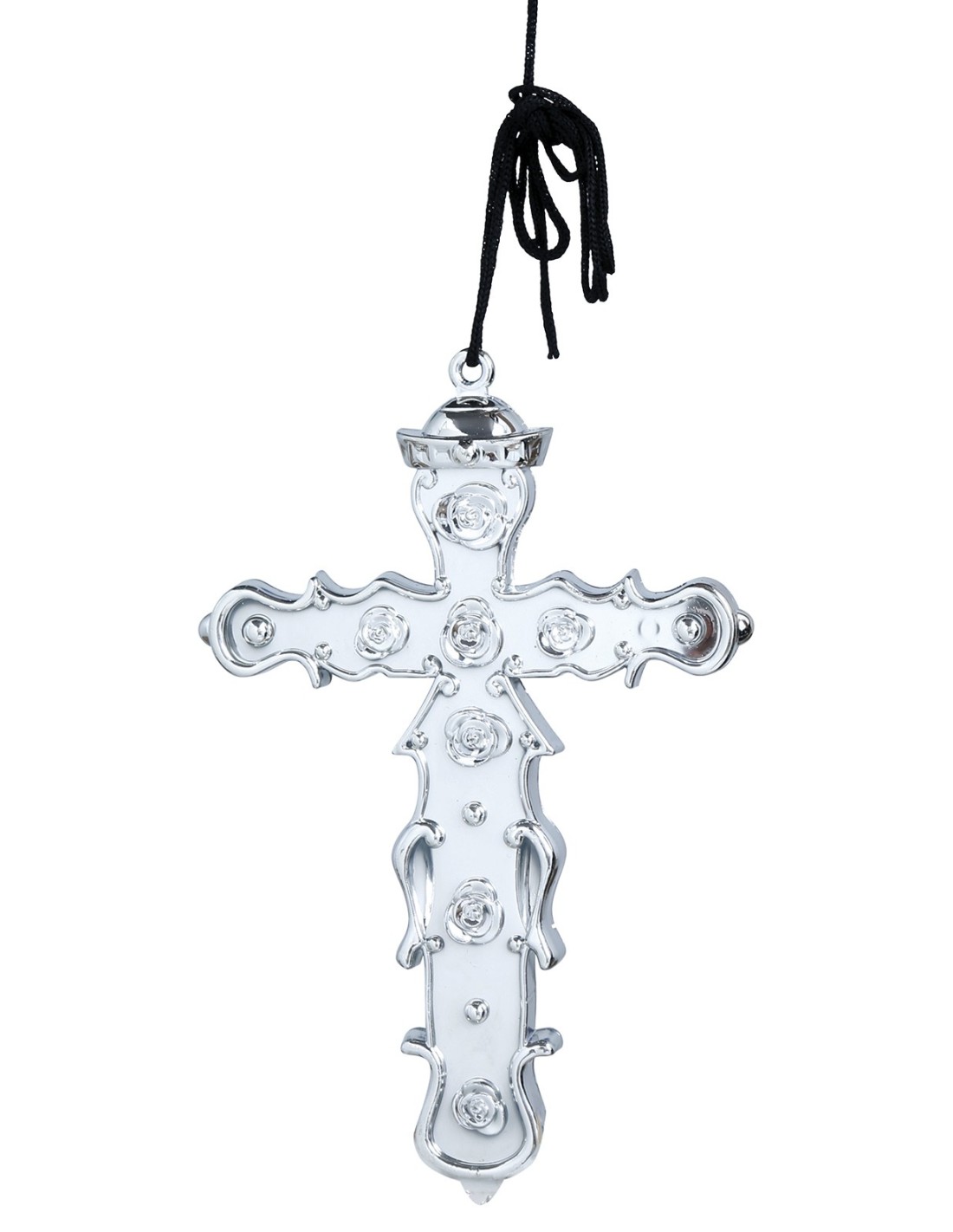La croce argento da 15 cm in PVC è l'accessorio perfetto per completare costumi religiosi, teatrali e storici. Realizzata in materiale plastico resistente con finitura argentata, questa croce decorativa presenta dettagli ornamentali che la rendono realistica e d'effetto. Con le sue dimensioni di 15 centimetri, è facilmente maneggiabile e visibile, ideale per essere portata in mano o appesa come elemento scenografico. L'accessorio è venduto singolarmente.