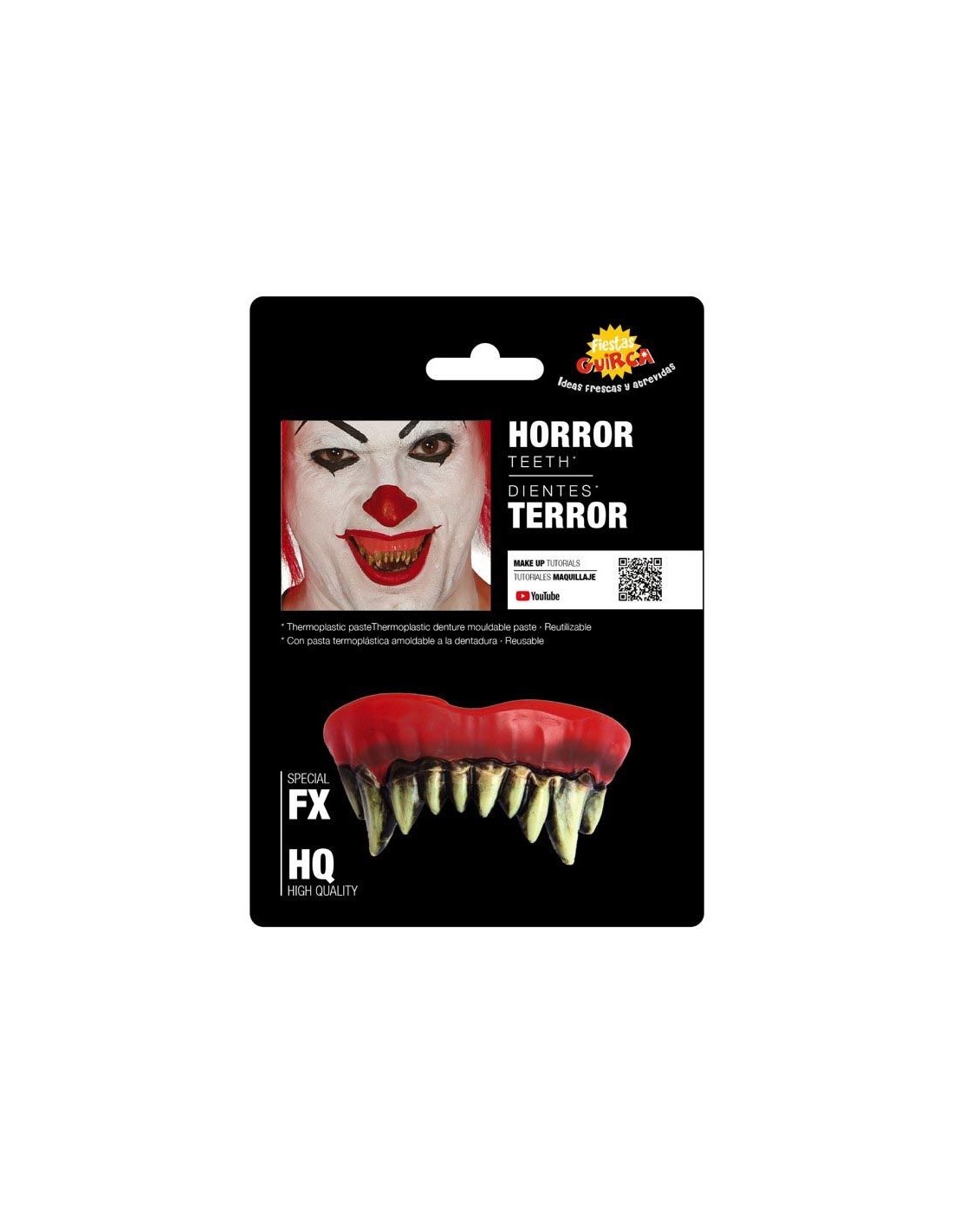 I denti da mostro sono l'accessorio perfetto per completare qualsiasi costume horror e trasformarsi in una creatura terrificante. Questa protesi dentale presenta canini affilati e denti ingialliti dall'aspetto minaccioso, realizzata in materiale plastico resistente che si adatta comodamente alla dentatura. Il set include la protesi dentale superiore con effetto invecchiato e macchiato per un look ancora più realistico e spaventoso.