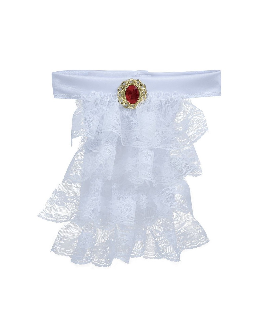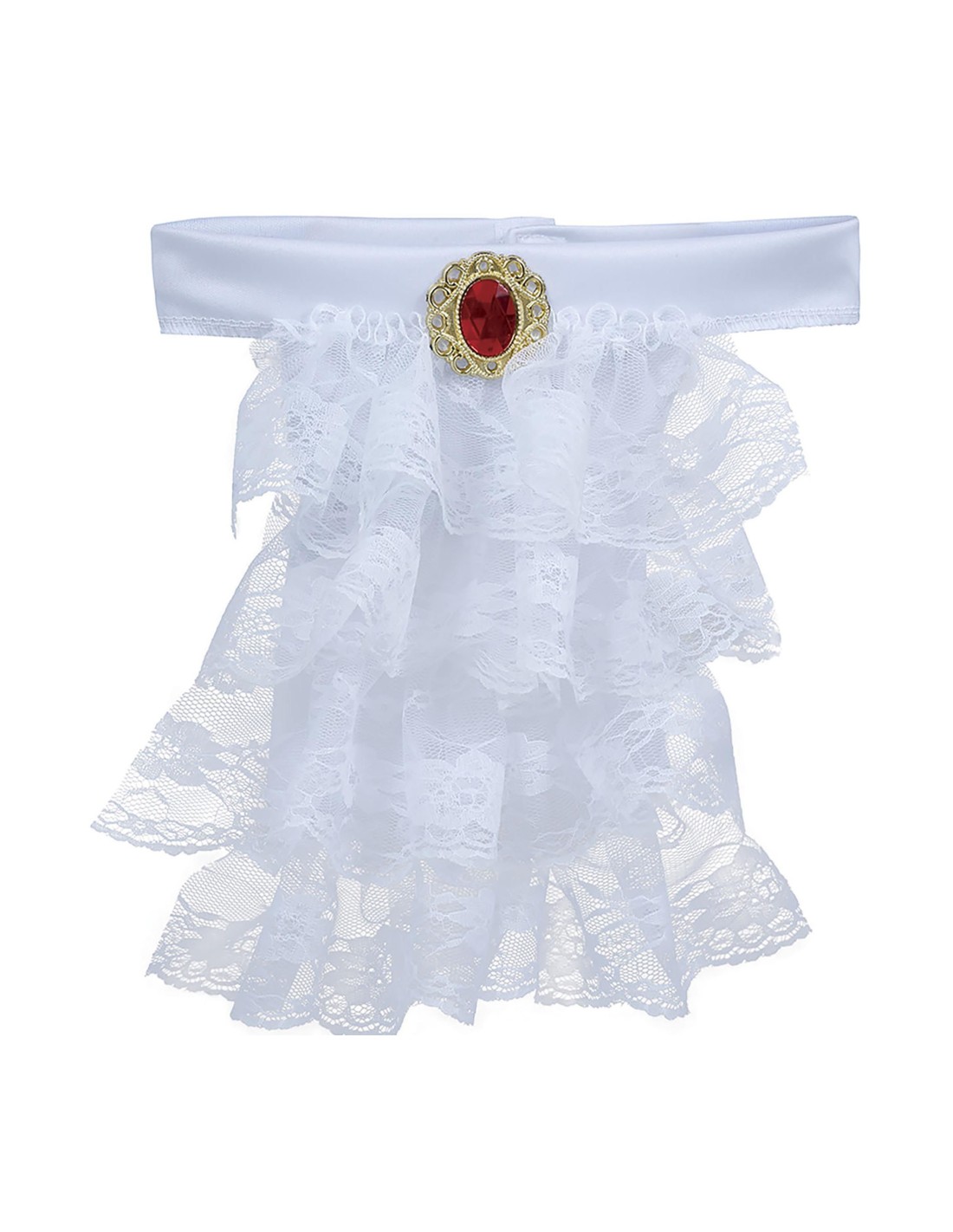 Il jabot in pizzo bianco è l'accessorio perfetto per completare costumi d'epoca, travestimenti gotici e look vampireschi. Questo fazzoletto decorativo si indossa al collo sopra camicie e abiti, creando un effetto scenografico e raffinato. Realizzato in pizzo bianco con dettagli elaborati, si fissa facilmente con spilla dorata inclusa. L'accessorio è in taglia unica e si adatta a diverse corporature grazie alla sua natura decorativa.