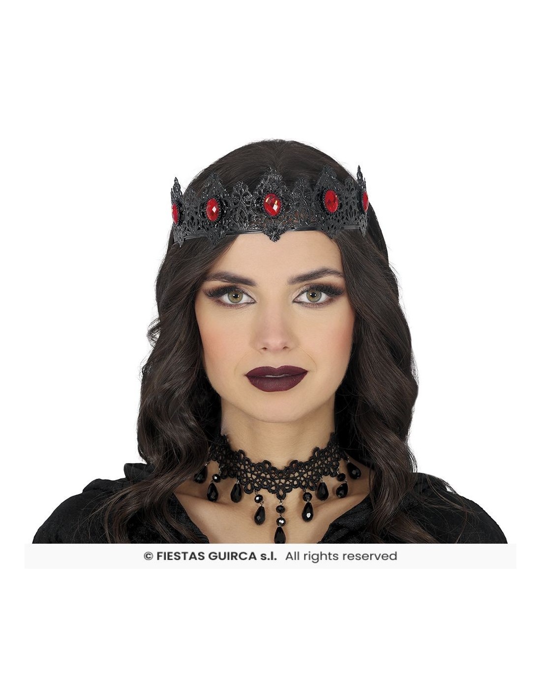 Corona regina nera con rubini rossi metallo