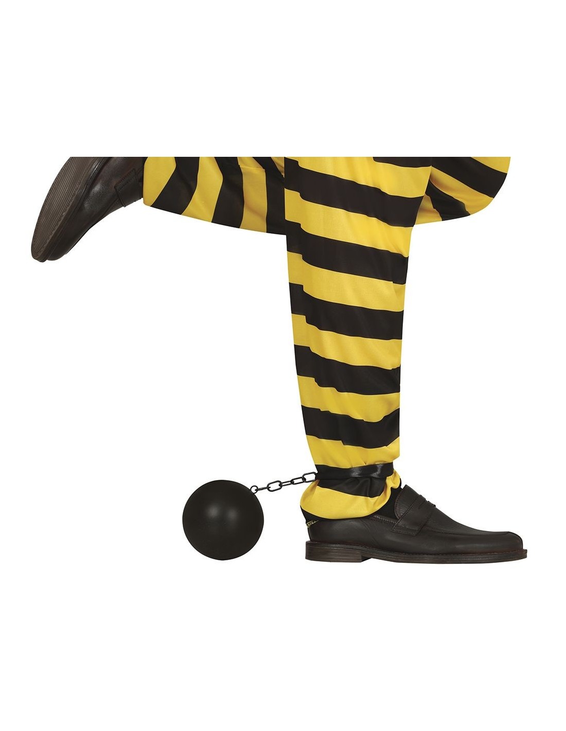 La palla al piede da carcerato è l'accessorio perfetto per completare il vostro travestimento a tema prigione e carcere. Questo simbolico elemento consiste in una pesante sfera nera collegata a una catena con cinturino per la caviglia, riproduce fedelmente l'iconica costrizione dei detenuti d'epoca. L'accessorio presenta una struttura resistente che dona realismo al costume, trasformando qualsiasi travestimento in un personaje autentico da carcerato. La palla al piede si fissa comodamente alla caviglia e permette comunque di camminare durante le feste.