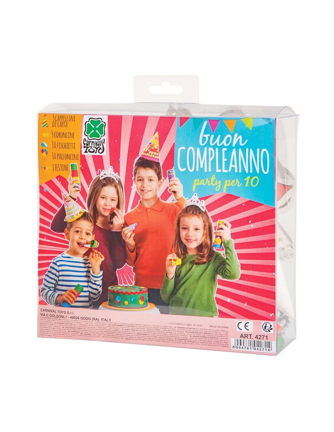 Party set compleanno (5 capp.,5 corone, 1 festone,10 lingue,10 pall.)