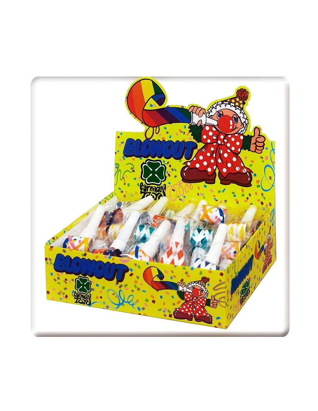 Questo pratico espositore contiene 48 lingue di suocera singole, perfette per animare ogni festa e celebrazione. Il set include 48 pezzi di lingue di suocera multicolori confezionate singolarmente, ideali per la rivendita o per eventi di gruppo. L'espositore colorato con grafica festosa attira l'attenzione ed è perfetto per negozi, bancarelle o feste organizzate. Ogni lingua di suocera produce il classico suono festoso che caratterizza le celebrazioni più allegre.
