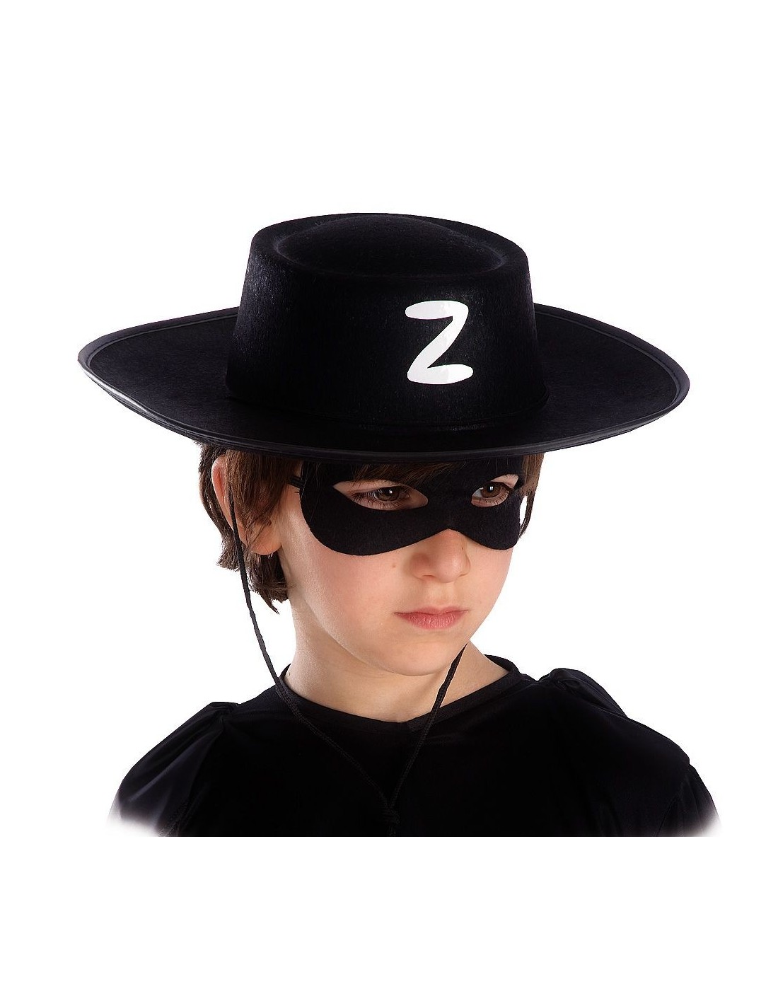 Il cappello cavaliere nero per bambini è realizzato in feltro resistente e presenta una classica forma a falda larga con distintiva lettera Z bianca. Perfetto per completare travestimenti da giustiziere mascherato, eroe misterioso o vigilante, questo copricapo dona carattere e personalità a ogni costume. Il design tradizionale del cappello cavaliere lo rende versatile per molteplici interpretazioni creative e trasformazioni teatrali.