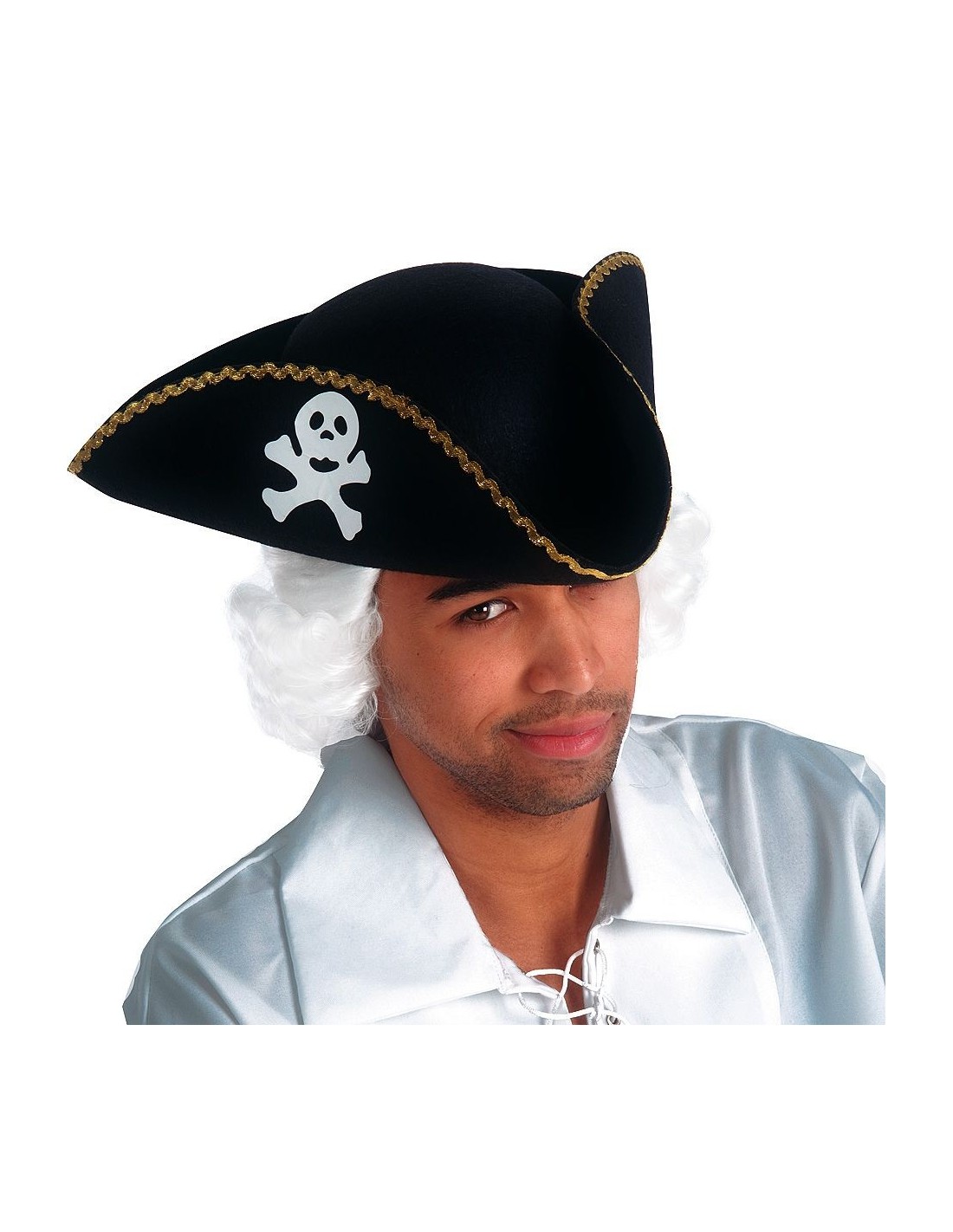 Questo cappello pirata in feltro nero è l'accessorio perfetto per trasformarti in un autentico corsaro dei sette mari. Caratterizzato dal classico simbolo del teschio bianco sulla parte frontale e dalle eleganti bordature dorate che impreziosiscono tutto il perimetro, presenta la tipica forma a tricorno che richiama i cappelli dei pirati del XVIII secolo. Realizzato in feltro resistente, garantisce comfort e vestibilità durante tutto l'utilizzo. Il set comprende esclusivamente il cappello pirata.