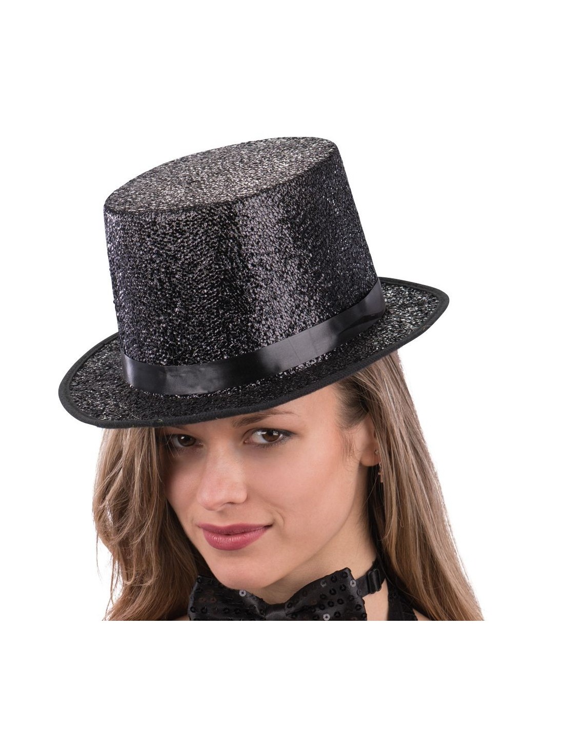 Elegante tuba nera in tessuto lurex con effetto brillantinato che cattura la luce ad ogni movimento. Questo classico cappello a cilindro alto circa 12 cm è realizzato in materiale lurex che dona un tocco scintillante al look. Il cappello è disponibile in taglia 58 ed è perfetto per completare costumi da mago, prestigiatore, gentiluomo d'epoca o personaggi teatrali. La fascia nera decorativa attorno alla base aggiunge un dettaglio raffinato che esalta l'aspetto scenografico del cappello.