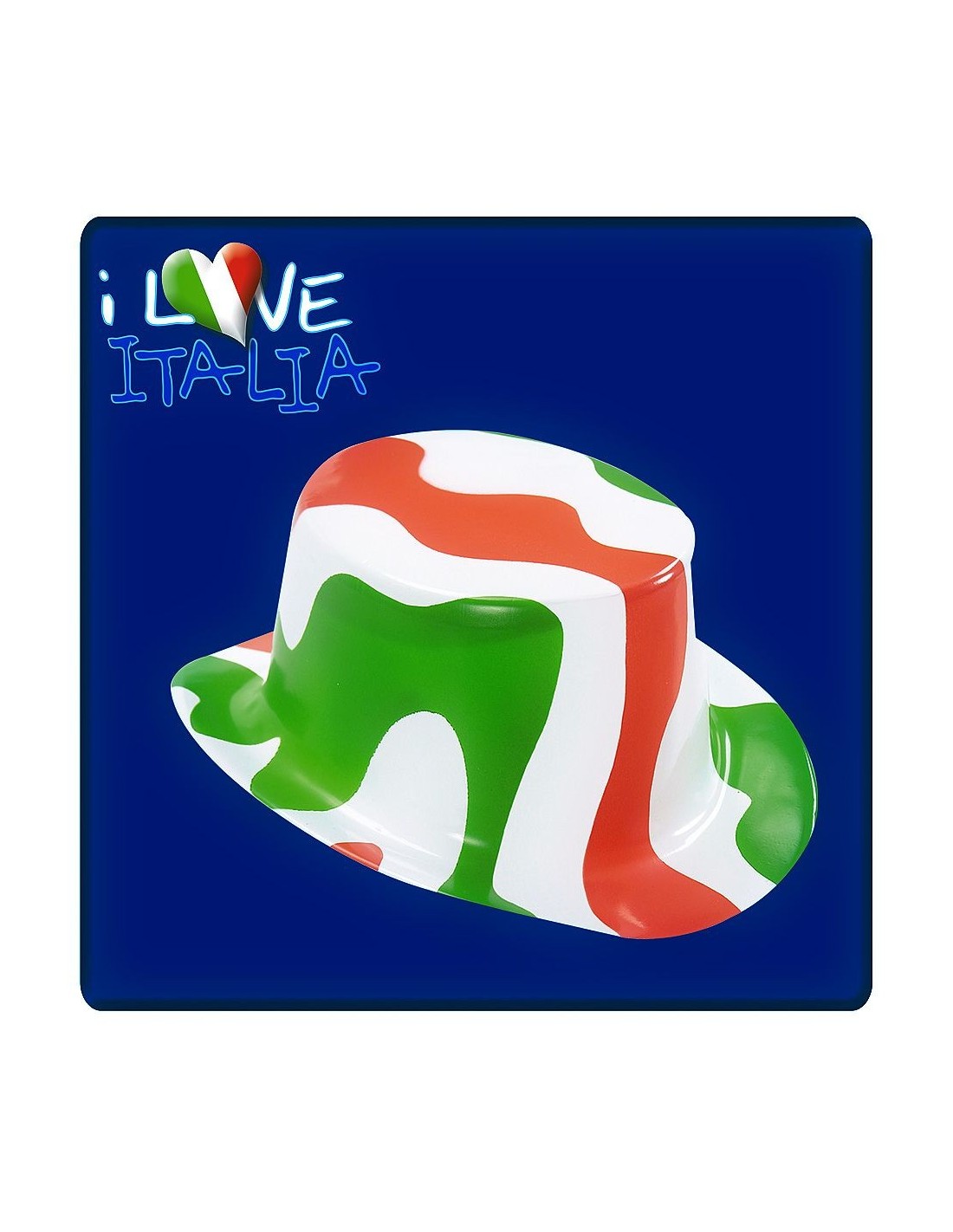 Il Cilindro Italia in plastica è l'accessorio perfetto per mostrare il tuo spirito patriottico durante eventi e celebrazioni. Questo elegante cappello cilindrico presenta i colori della bandiera italiana - verde, bianco e rosso - in un design vivace e accattivante. Realizzato in materiale plastico resistente, garantisce comfort durante l'utilizzo e facilità di pulizia. Il cappello è dotato di una fascia interna per una vestibilità comoda e sicura.