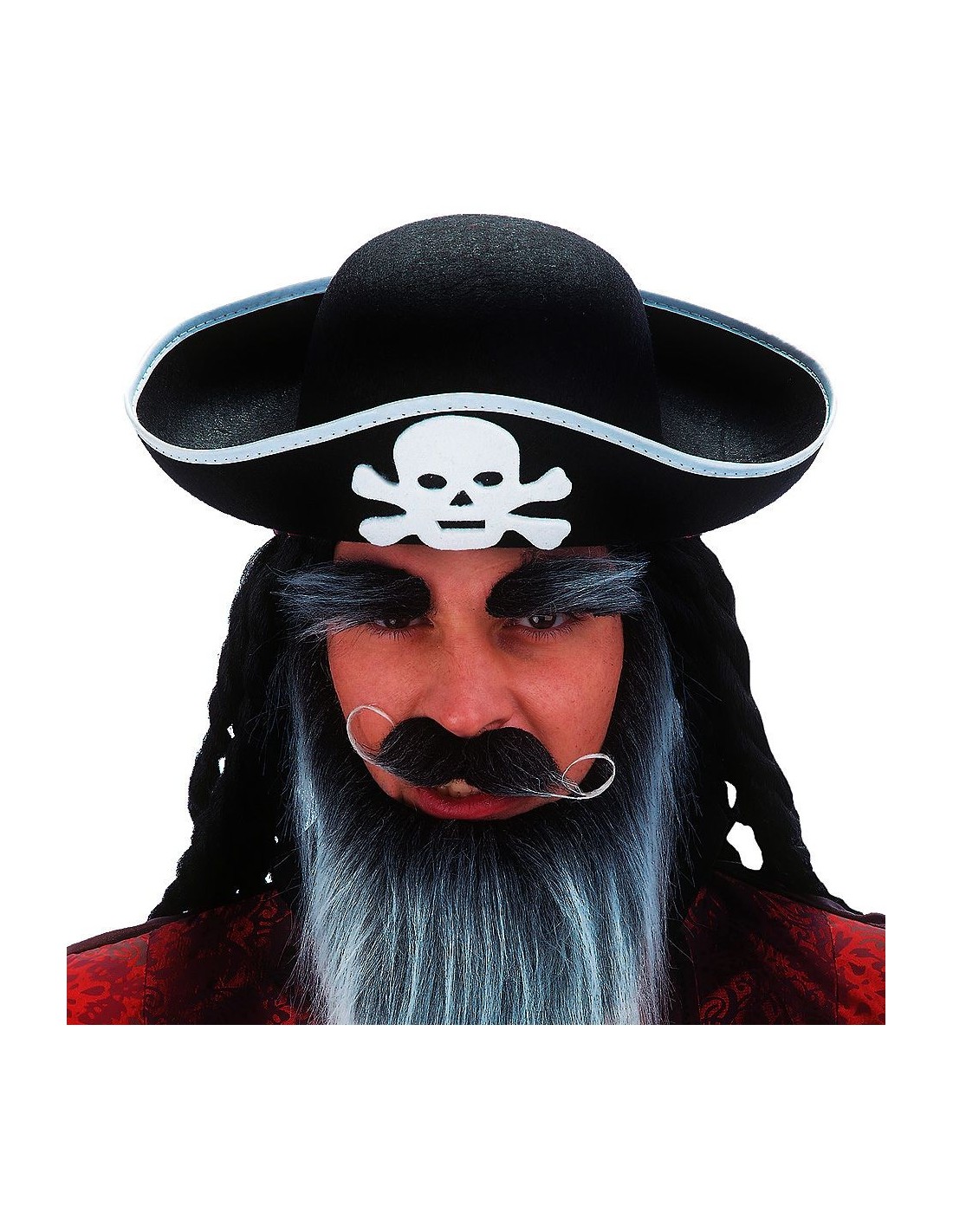 Cappello pirata nero in feltro, l'accessorio immancabile per trasformarsi in un temibile corsaro dei mari. Caratterizzato dalla classica forma a tricorno con ampia tesa e decorazione frontale con teschio e tibie incrociate, simbolo iconico della pirateria. Realizzato in feltro nero resistente, questo copricapo si adatta comodamente alla testa e dona immediatamente l'aspetto autentico del pirata. Il set comprende esclusivamente il cappello, perfetto da abbinare a camicie, pantaloni scuri e altri accessori pirata per completare il travestimento.