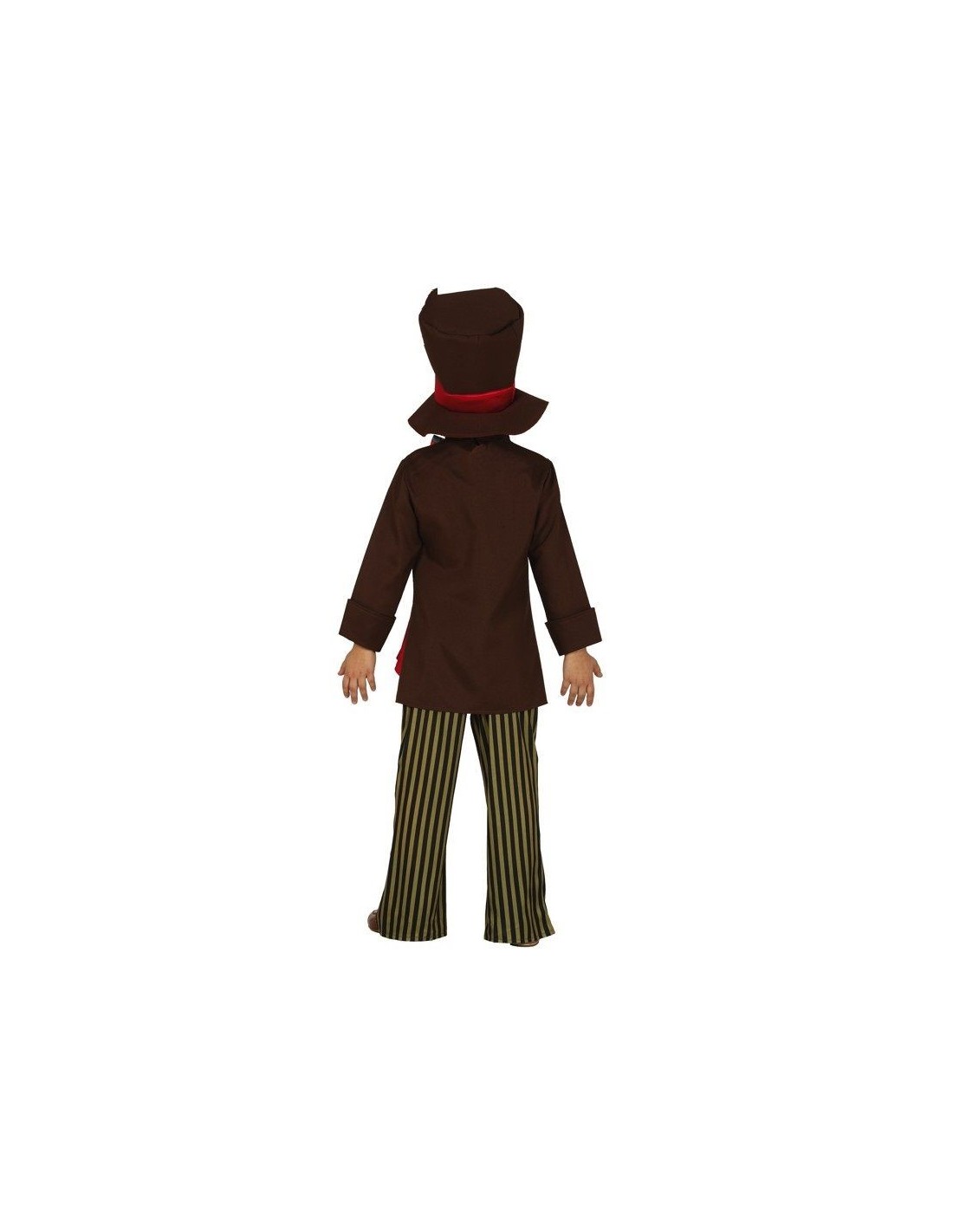 Trasforma il tuo bambino nel fantastico Cappellaio Matto di Alice nel Paese delle Meraviglie con questo costume completo e coloratissimo. Il set comprende giacca marrone con maglia incorporata, pantalone a righe verdi, l'iconico cappello a cilindro marrone con fascia rossa e la vivace cravatta multicolore. Ogni elemento è studiato per ricreare fedelmente il look del personaggio più stravagante del mondo di Lewis Carroll, perfetto per bambini dai 7 ai 9 anni.