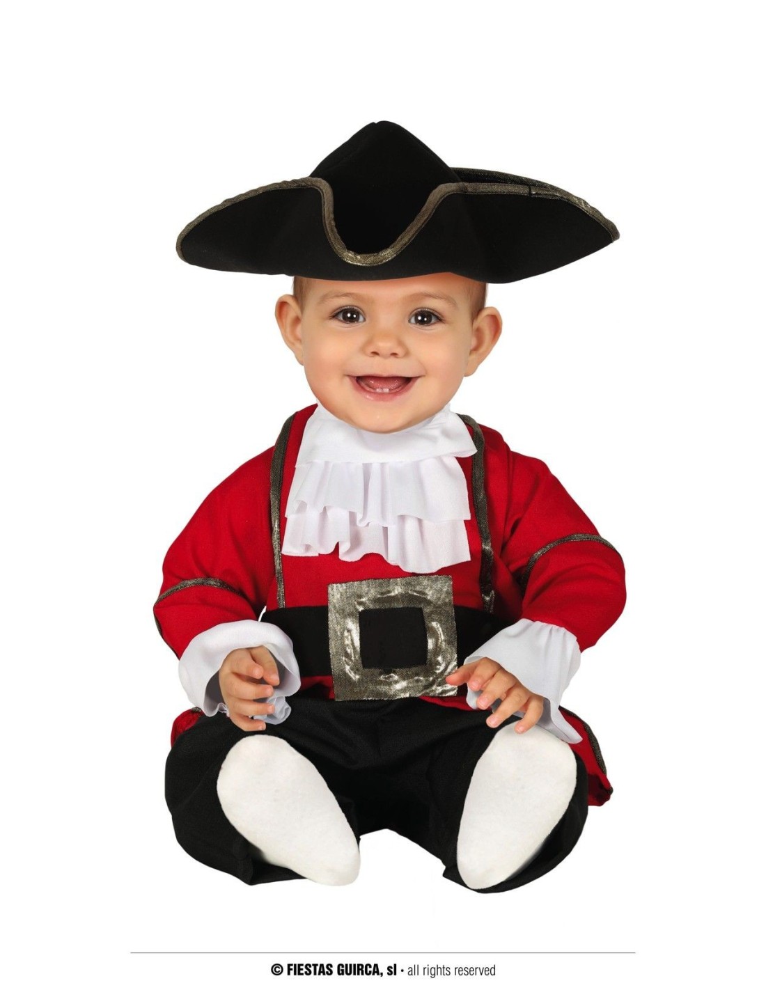 Trasforma il tuo piccolo in un adorabile pirata dei mari con questo costume completo per bambini. Il set include una giacca rossa con dettagli bianchi, pantaloni neri con cintura decorativa e l'iconico cappello tricorno nero che completa perfettamente il look da corsaro. Realizzato in tessuto morbido e confortevole, questo costume garantisce libertà di movimento durante le avventure in maschera. La combinazione di colori rosso, nero e bianco dona al costume un aspetto autentico e accattivante, perfetto per far vivere ai più piccoli emozionanti avventure da pirata.