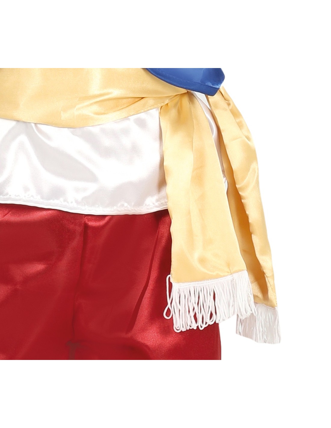 Trasformati nel celebre ladro del deserto con questo affascinante costume da Aladdin. Il set comprende un elegante turbante rosso con piuma viola, gilet blu senza maniche, camicia bianca con maniche ampie, pantaloni rossi e una cintura dorata che completa il look orientale. Realizzato in tessuto morbido e confortevole, questo costume garantisce libertà di movimento durante le avventure. Ideale per bambini dai 7 ai 9 anni, ogni elemento è pensato per ricreare fedelmente l'aspetto del personaggio delle fiabe orientali.