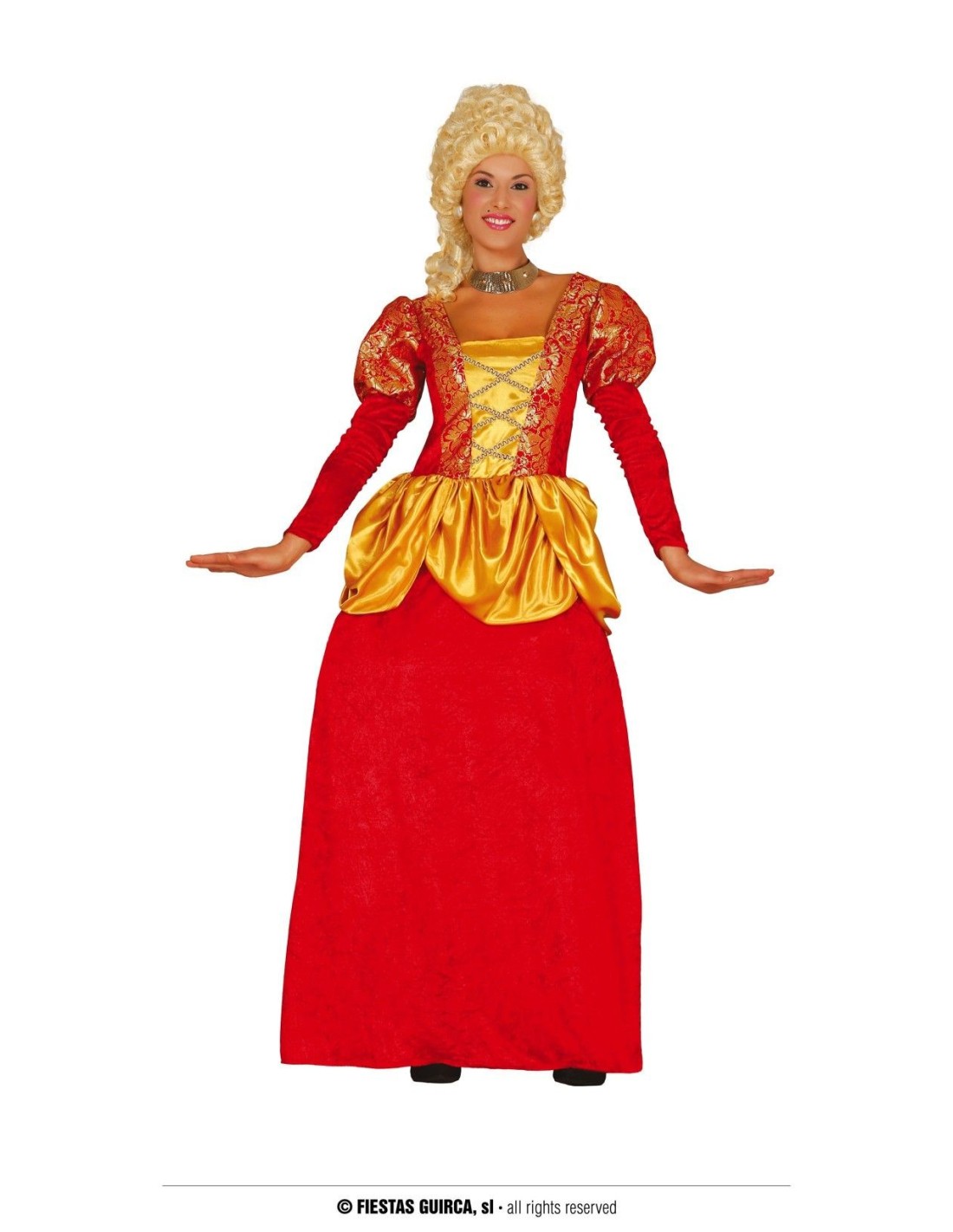 Questo splendido costume da nobildonna ti trasporta nell'eleganza dell'epoca barocca con un magnifico abito in rosso e oro. Il set comprende un raffinato vestito lungo caratterizzato da corpetto dorato con allacciatura frontale decorativa, maniche rosse a sbuffo e gonna lunga rossa. I dettagli dorati e le rifiniture elaborate creano un look maestoso perfetto per rivivere l'atmosfera delle corti europee. Il tessuto fluido garantisce comodità durante l'utilizzo, mentre i colori vivaci catturano immediatamente l'attenzione.