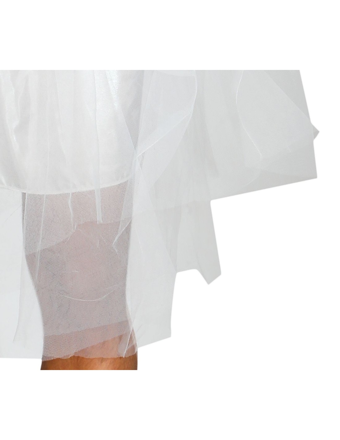 Trasformati nella sposa più sorprendente della festa con questo esilarante costume da sposa per uomo. Il set comprende un elegante abito bianco con corpetto scollato, gonna ampia e velo con coroncina, perfetto per creare un travestimento divertente e ironico. Realizzato in tessuto leggero e confortevole, questo costume garantisce libertà di movimento e un effetto scenico assicurato. L'abito presenta dettagli femminili reinterpretati in chiave comica, mentre il velo completa il look con un tocco di autenticità surreale.