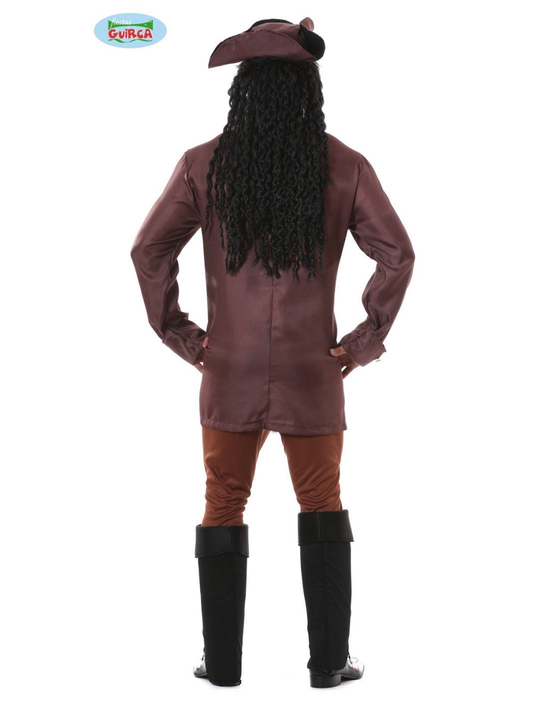 Trasformati nel leggendario capitano dei mari con questo affascinante costume da pirata caraibico. Il set include una magnifica giacca marrone con dettagli dorati, pantaloni coordinati, camicia bianca e il caratteristico cappello da capitano. I ricami e le finiture dorate conferiscono un aspetto autentico e teatrale, perfetto per interpretare il ruolo del pirata più temuto dei Caraibi. Il costume è realizzato per garantire comfort e libertà di movimento durante le tue avventure.