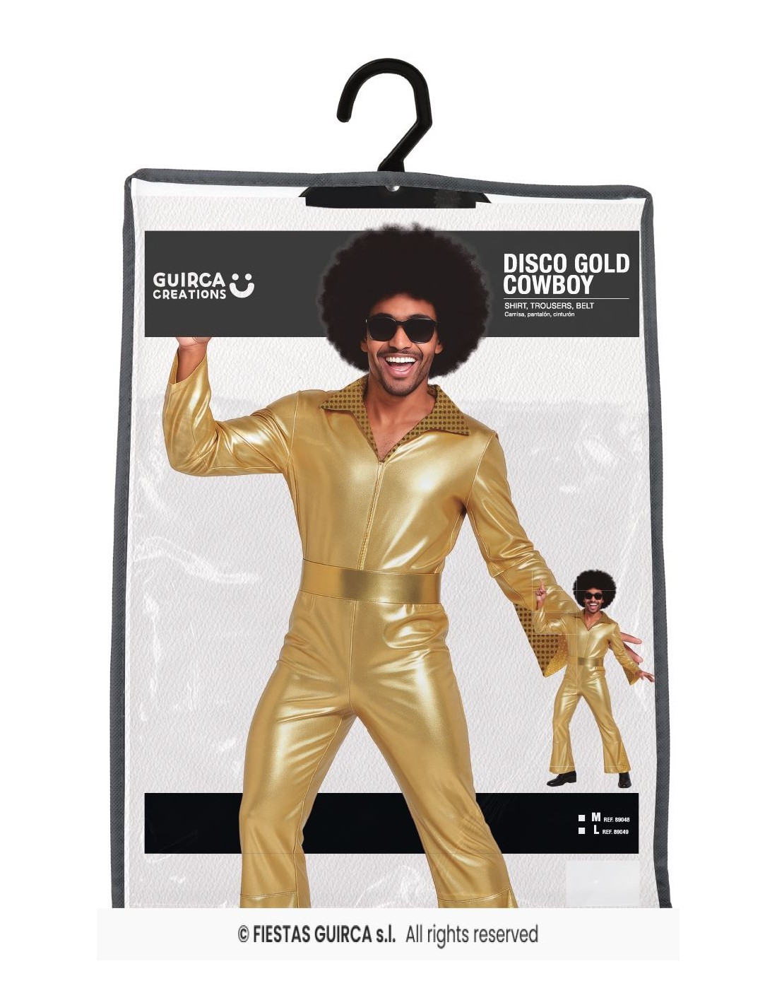 Tuffati nell'atmosfera magica degli anni '70 con questo spettacolare costume disco oro da uomo. La tuta metallizzata dorata cattura la luce e ti trasforma nel protagonista della pista da ballo. Il set comprende una tuta intera con collo a camicia e zampe d'elefante tipiche dell'epoca disco. Il tessuto lucido e l'effetto metallico oro creano un look scintillante perfetto per rivivere lo stile glamour della disco fever. La vestibilità comoda permette di ballare liberamente tutta la notte.
