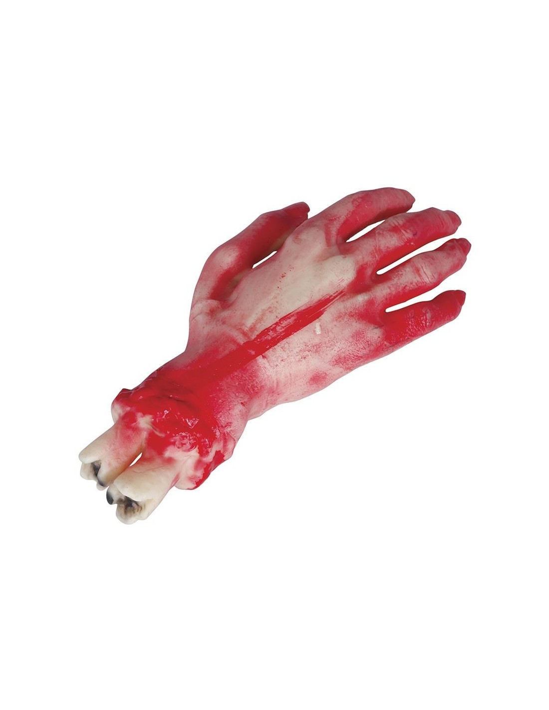 Una mano mozzata lunga 25 centimetri realizzata in lattice con dettagli realistici di ferite sanguinolente e tessuti esposti. Questa decorazione horror presenta una colorazione rossastra con effetti di sangue e carne viva che la rendono estremamente convincente. Il materiale in lattice garantisce flessibilità e resistenza, permettendo di posizionare l'oggetto in diverse posizioni per creare l'effetto desiderato. Perfetta per allestimenti macabri e scene del crimine simulate.