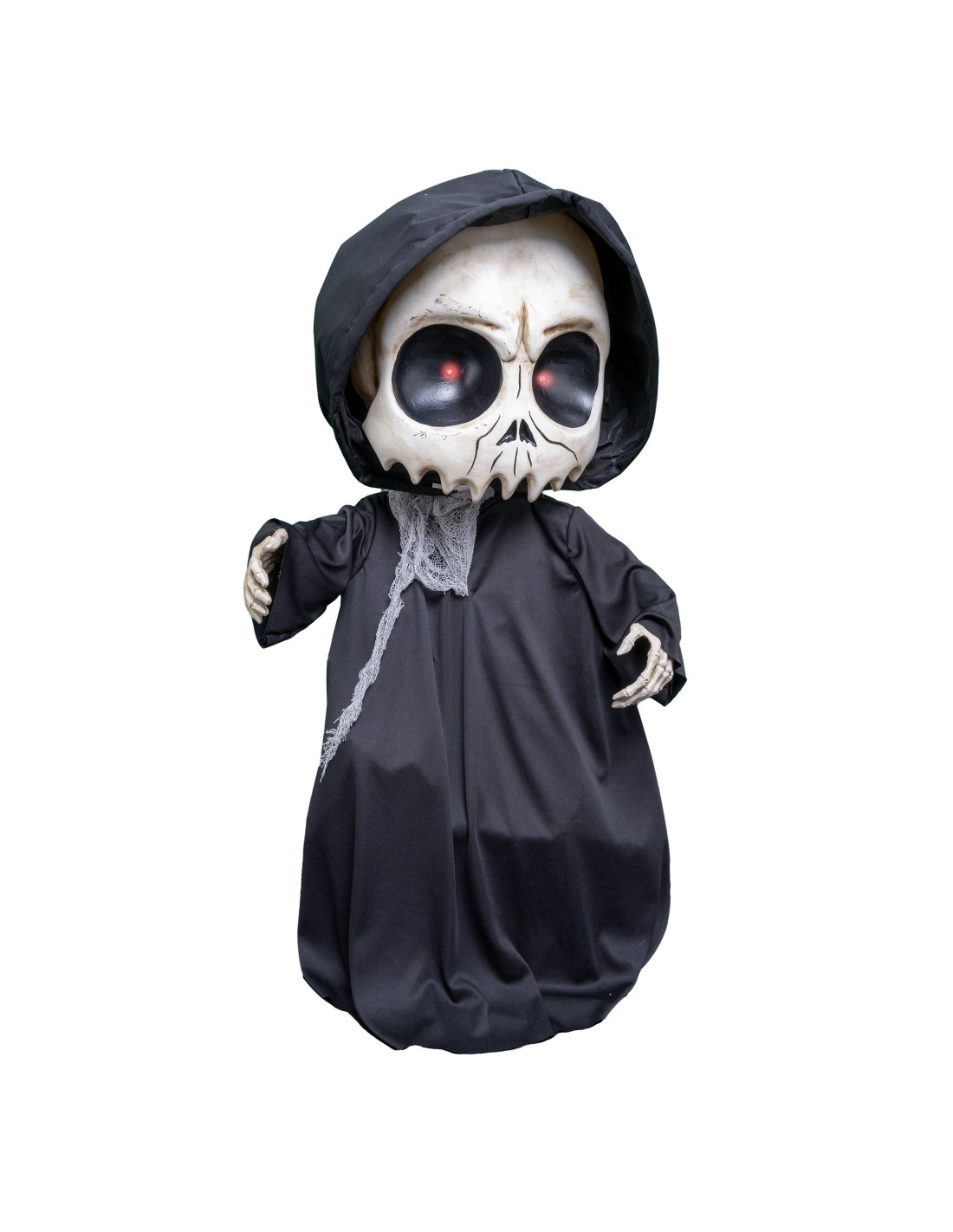 Il Cupo mietitore animato è una decorazione Halloween dal grande impatto scenico, alta 90 centimetri. Questa figura spettrale con teschio bianco, occhi rossi luminosi e mantello nero con cappuccio crea un'atmosfera di terrore perfetta per le tue decorazioni. Il movimento automatico e gli effetti sonori rendono questa decorazione ancora più realistica e spaventosa. Realizzata con materiali resistenti, può essere posizionata sia in interni che in esterni protetti.