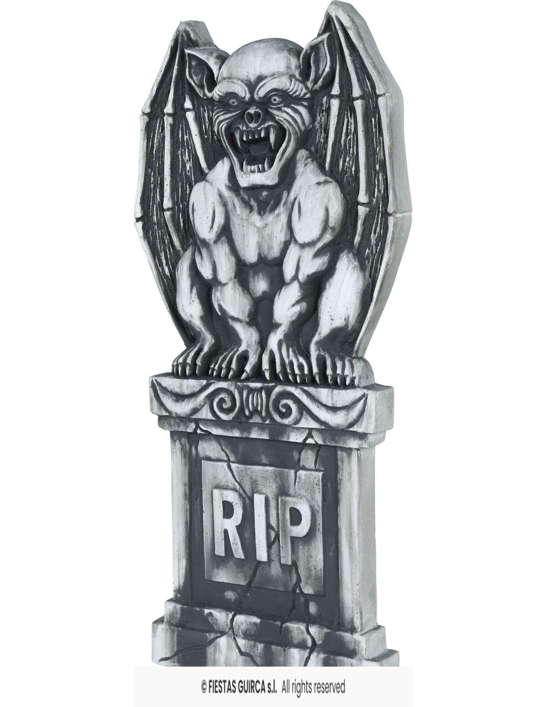 Trasforma il tuo ambiente in un luogo da brividi con questa impressionante lapide decorativa Halloween che raffigura un minaccioso gargoyle dalle ali spiegate. La decorazione presenta dimensioni generose di 90x40 cm e mostra un gargoyle dall'aspetto terrificante con zanne aguzze e artigli minacciosi, posizionato su una lapide con scritta RIP. Il design dettagliato e l'effetto pietra antica creano un'atmosfera gotica perfetta per qualsiasi allestimento horror. La struttura robusta permette un facile posizionamento sia in interni che in esterni.