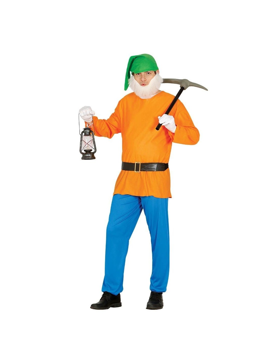 Questo costume da nano include tutto il necessario per trasformarti nel classico personaggio delle fiabe. Il set comprende una tunica arancione, pantaloni blu, cintura nera, cappello verde e barba bianca. Completano il look la piccozza e la lanterna, accessori iconici che rendono il costume immediatamente riconoscibile. I materiali sono comodi da indossare e permettono libertà di movimento durante le feste.