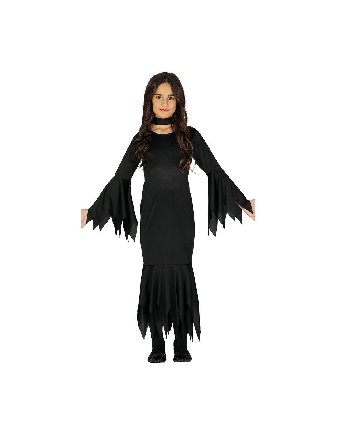 Trasforma la tua bambina nella misteriosa e affascinante Morticia Addams con questo costume nero completo. L'abito lungo presenta un elegante collo alto, maniche svasate a pipistrello e orlo frastagliato che dona il classico look gotico del personaggio. Realizzato in tessuto morbido e confortevole, garantisce libertà di movimento durante feste e celebrazioni. Il costume è disponibile per bambine di 7-9 anni e include l'abito completo con tutti i dettagli caratteristici della matriarca della Famiglia Addams.