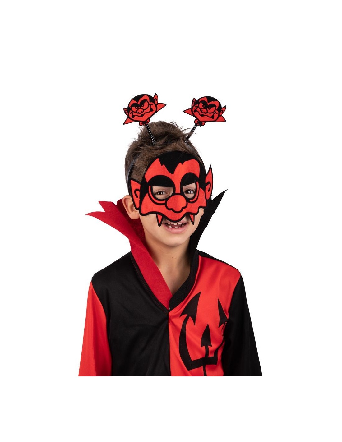 Trasformati in un vampiro dal fascino diabolico con questo set completo che include una maschera dal design spaventoso in tonalità rosse e nere e un originale cerchietto decorato con rose rosse. La maschera presenta dettagli horror con denti aguzzi e espressione minacciosa, mentre il cerchietto con rose in tessuto aggiunge un tocco gotico perfetto per completare il look da creatura della notte. Il set è realizzato in materiali leggeri e confortevoli, ideale per essere indossato durante tutta la serata.