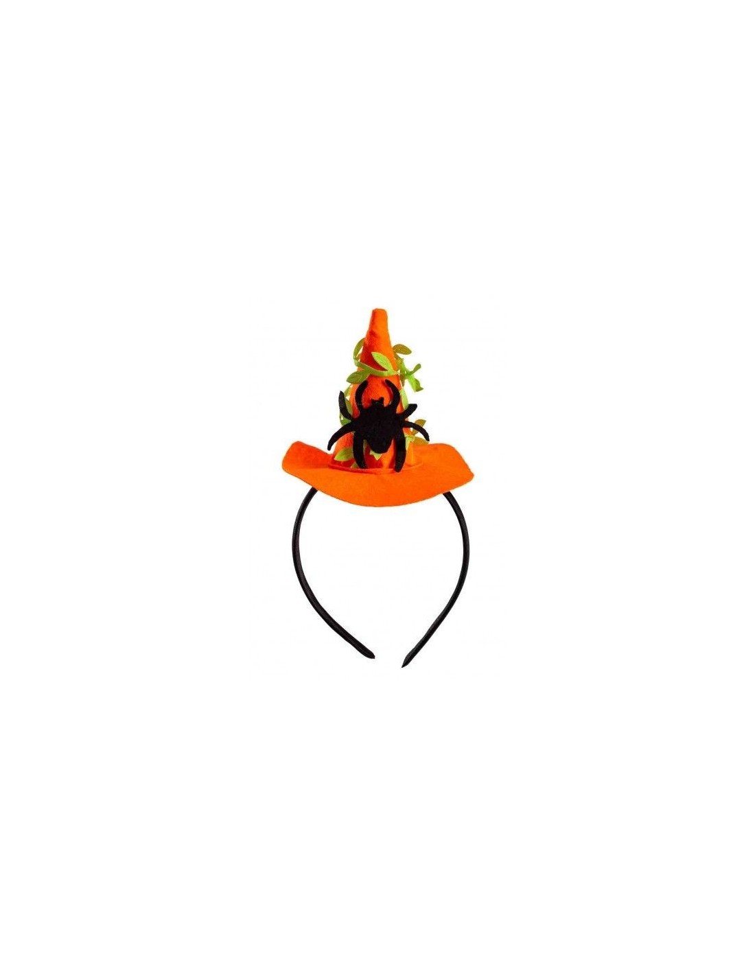Questo mini cappello da strega in feltro arancione è l'accessorio perfetto per completare il tuo look di Halloween. Il cappello, alto circa 9,5 cm, è decorato con un ragno nero e nastri verdi che creano un effetto spettacolare. Montato su un comodo cerchietto nero, si indossa facilmente e rimane stabile per tutta la serata. Il feltro morbido e i dettagli curati rendono questo accessorio un must-have per trasformarti in una strega moderna e affascinante.