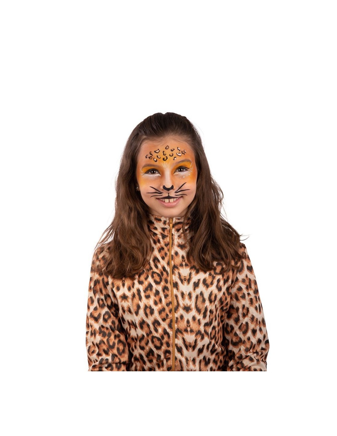 Trasformati in un elegante felino con questa cartella di tatuaggi temporanei per il viso dal design leopardato. La cartella include diversi tatuaggi studiati appositamente per ricreare il muso e le caratteristiche macchie del leopardo su viso e collo. I tatuaggi sono facili da applicare, resistenti all'acqua e si rimuovono facilmente con acqua tiepida e sapone. Perfetti per completare qualsiasi costume da leopardo o look animalier, permettono di ottenere un trucco professionale in pochi minuti senza bisogno di pennelli o colori.