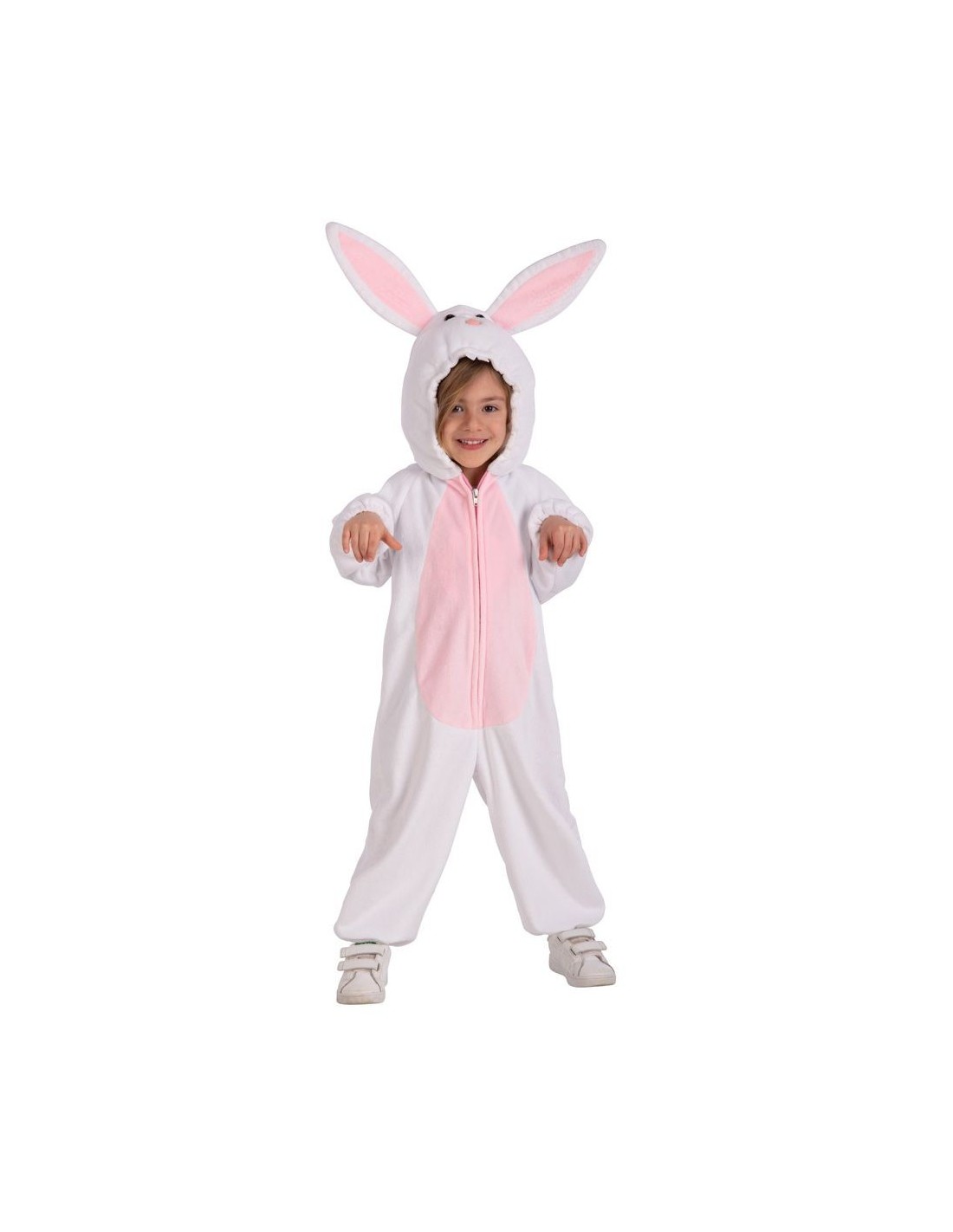 Questa adorabile tutona da coniglietto trasforma i più piccoli nel più tenero degli animali! Realizzata in soffice pelliccetta bianca con dettagli rosa, il costume include la tutona completa con cappuccio decorato da lunghe orecchie da coniglio e nasino ricamato. Il design avvolgente garantisce calore e comodità durante le feste, mentre la chiusura frontale facilita l'indossamento. Le maniche lunghe e le gambe complete offrono una vestibilità perfetta per saltellare e giocare in totale libertà.