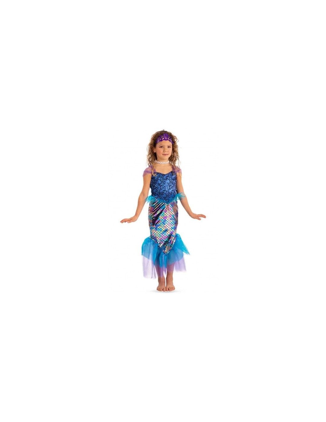 Trasformati nella sirenetta dei tuoi sogni con questo incantevole costume completo! Il set include un elegante top blu con dettagli decorativi e una splendida coda a sirena con effetto iridescente multicolore che riflette tutti i colori dell'arcobaleno. La gonna presenta un finale in tulle azzurro e lilla che crea un movimento fluido e magico. Il costume è realizzato in tessuti confortevoli che permettono libertà di movimento, perfetto per far vivere ai più piccoli l'esperienza di essere una vera principessa del mare.