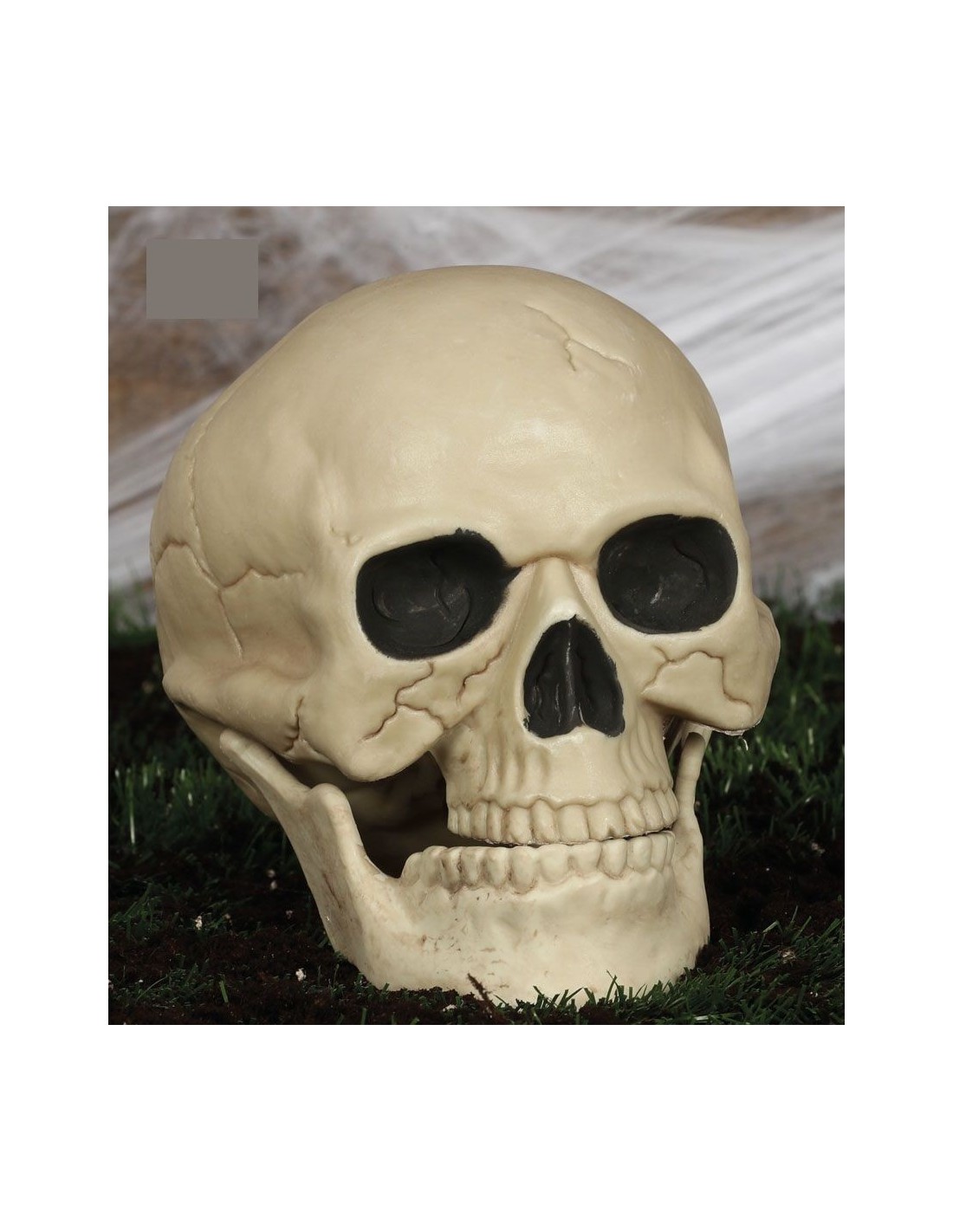 Questo teschio decorativo dalle dimensioni di 20 centimetri rappresenta l'accessorio perfetto per creare atmosfere macabre e terrificanti. Realizzato con cura nei dettagli anatomici, presenta orbite profonde, dentatura completa e caratteristiche crepe che ne aumentano il realismo. La superficie presenta una colorazione naturale invecchiata che conferisce autenticità al pezzo. Ideale come elemento scenografico per allestimenti horror, decorazioni domestiche a tema gotico o come prop per completare costumi da scheletro, necromante o personaggi dell'oltretomba.