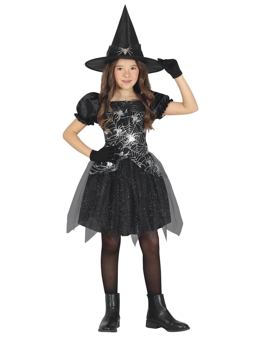 Questo affascinante costume da strega bambina presenta un elegante abito nero decorato con splendidi dettagli argento che creano motivi magici e misteriosi. Il set comprende un abito con corpetto strutturato e gonna in tulle vaporoso, completato da un iconico cappello da strega a punta nera. I dettagli argentati brillano sulla superficie del costume, creando un effetto scenografico perfetto per trasformare ogni bambina in una piccola maga. Il design combina il classico look da strega con tocchi moderni e scintillanti.
