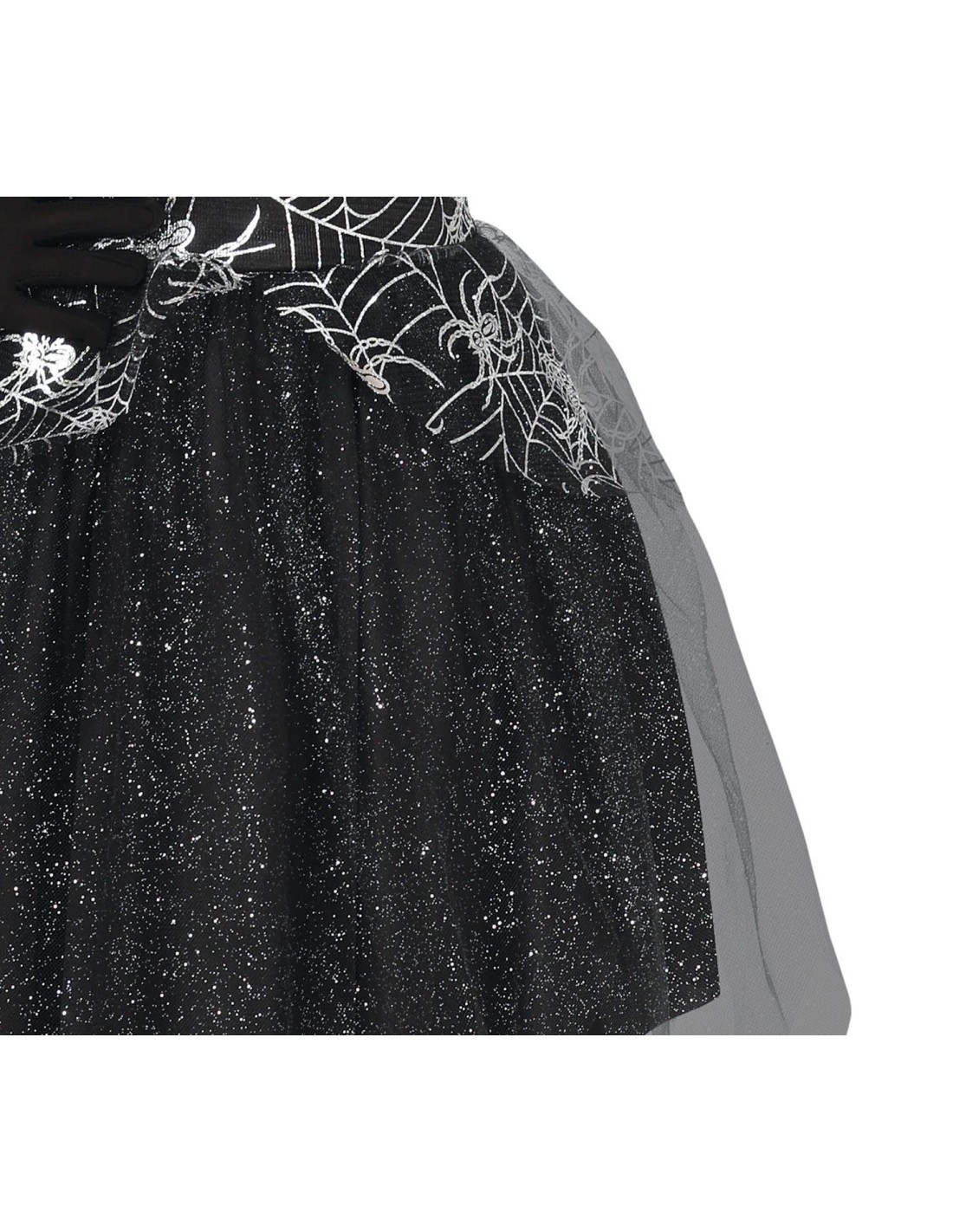 Questo affascinante costume da strega per bambina combina il classico nero con dettagli argento scintillanti che creano un look magico e misterioso. Il set comprende un elegante abito nero con decorazioni argentate che brillano sotto la luce, maniche a sbuffo e gonna in tulle per un effetto vaporoso. Il cappello da strega completamente nero con fascia argentata completa perfettamente il travestimento. Realizzato in materiali confortevoli per permettere libertà di movimento durante le feste. Questo costume trasformerà ogni bambina in una piccola maga dal fascino irresistibile.
