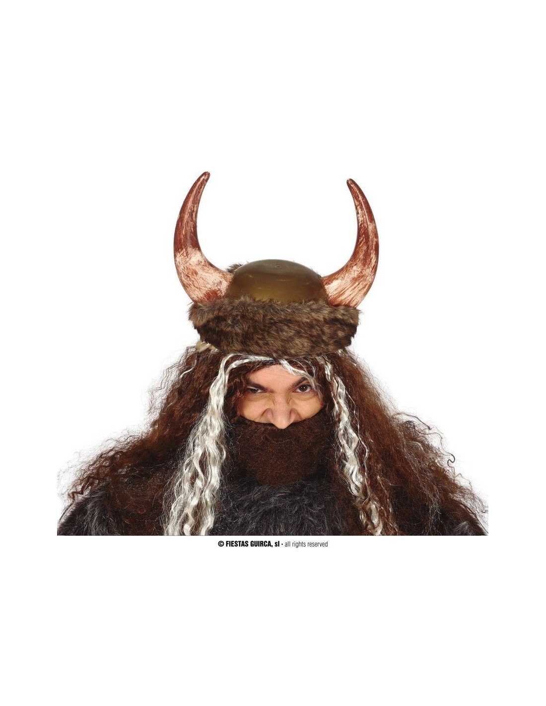 Trasformati in un guerriero vichingo con questo caratteristico cappello dotato di imponenti corna e dettagli in pelo. Il copricapo presenta una struttura robusta con corna ricurve che evocano la tradizione nordica, completato da una fascia in pelo sintetico che dona autenticità al look. Il design include anche lunghi capelli e barba posticcia che completano perfettamente la trasformazione in un temibile guerriero del nord.