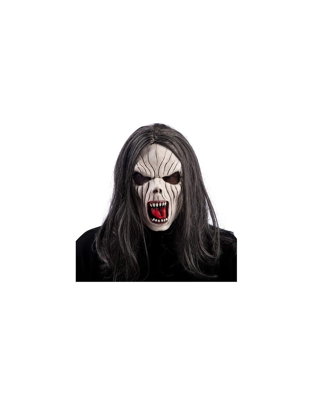 Trasformati in una creatura della notte con questa inquietante maschera da vampiro, caratterizzata da tratti demoniaci e un'espressione terrificamente realistica. Il viso pallido presenta profonde rughe e segni che conferiscono un aspetto cadaverico, mentre la bocca spalancata rivela denti aguzzi rosso sangue che incuteranno terrore. Completano il look i lunghi capelli neri scompigliati che creano un effetto ancora più spaventoso. La maschera è realizzata in materiale resistente e assicura una vestibilità confortevole per tutta la durata dell'evento.