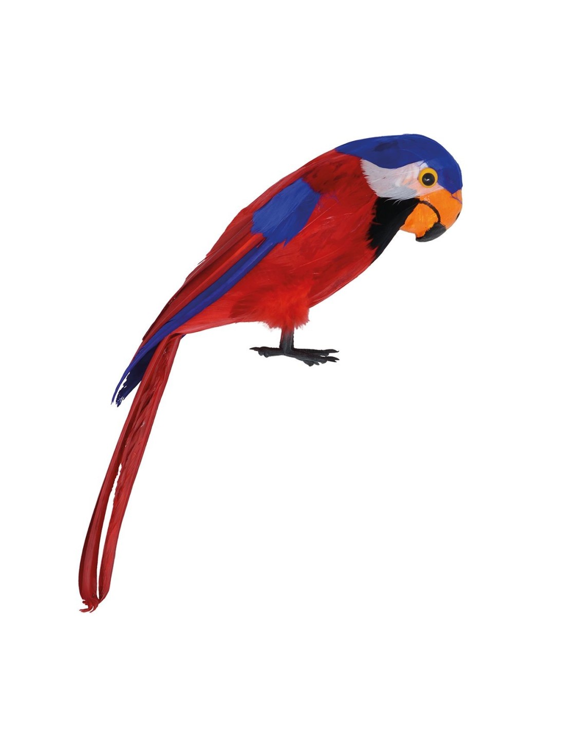 Trasforma il tuo travestimento da pirata con questo splendido pappagallo tropicale dalle piume multicolori lungo 40 cm. L'accessorio presenta piume rosse, blu e bianche che ricreano fedelmente l'aspetto di un vero pappagallo ara. Perfetto da portare sulla spalla o sul braccio, questo simpatico volatile di stoffa e piume naturali renderà il tuo costume da corsaro autentico e divertente. Il pappagallo è dotato di un meccanismo che permette di fissarlo facilmente al costume.