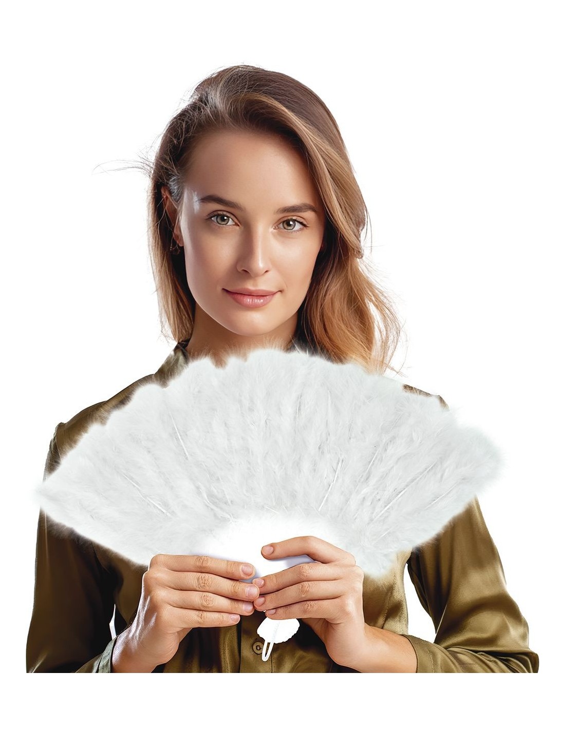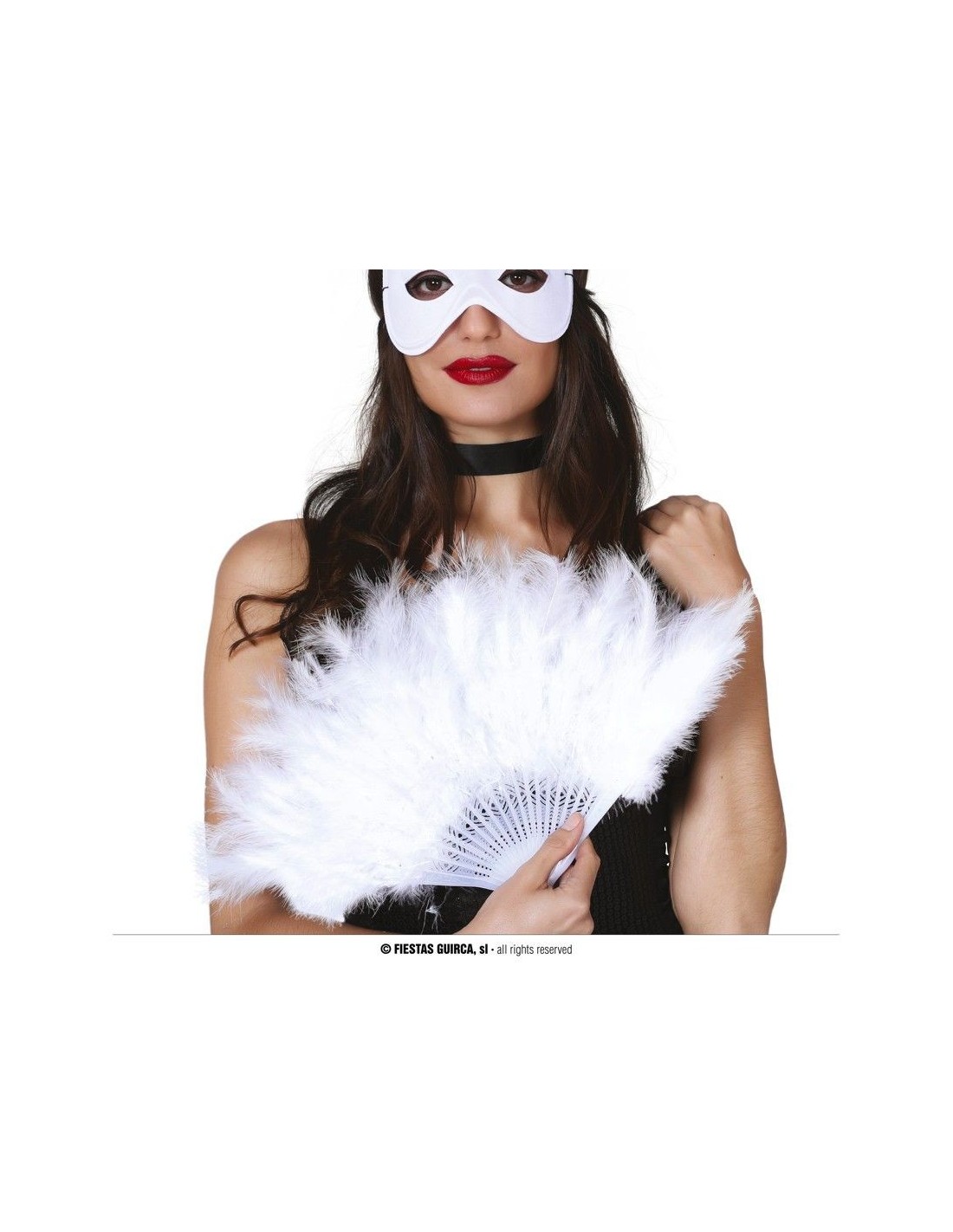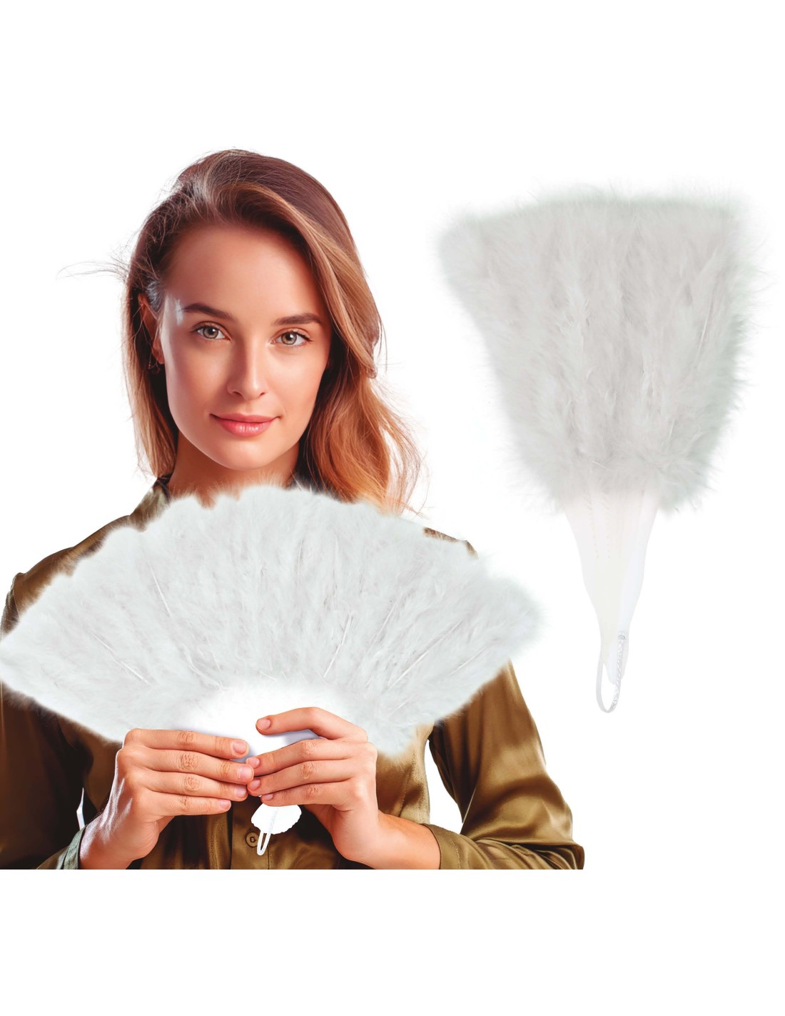 Raffinato ventaglio decorativo realizzato con soffici piume bianche, perfetto per completare costumi d'epoca, look da dama veneziana o outfit eleganti. Le piume naturali creano un effetto scenico e sofisticato, ideale per chi vuole distinguersi con un accessorio ricercato. Il ventaglio presenta una struttura solida e un design classico che richiama l'eleganza dei salotti settecenteschi e delle feste in maschera più raffinate.