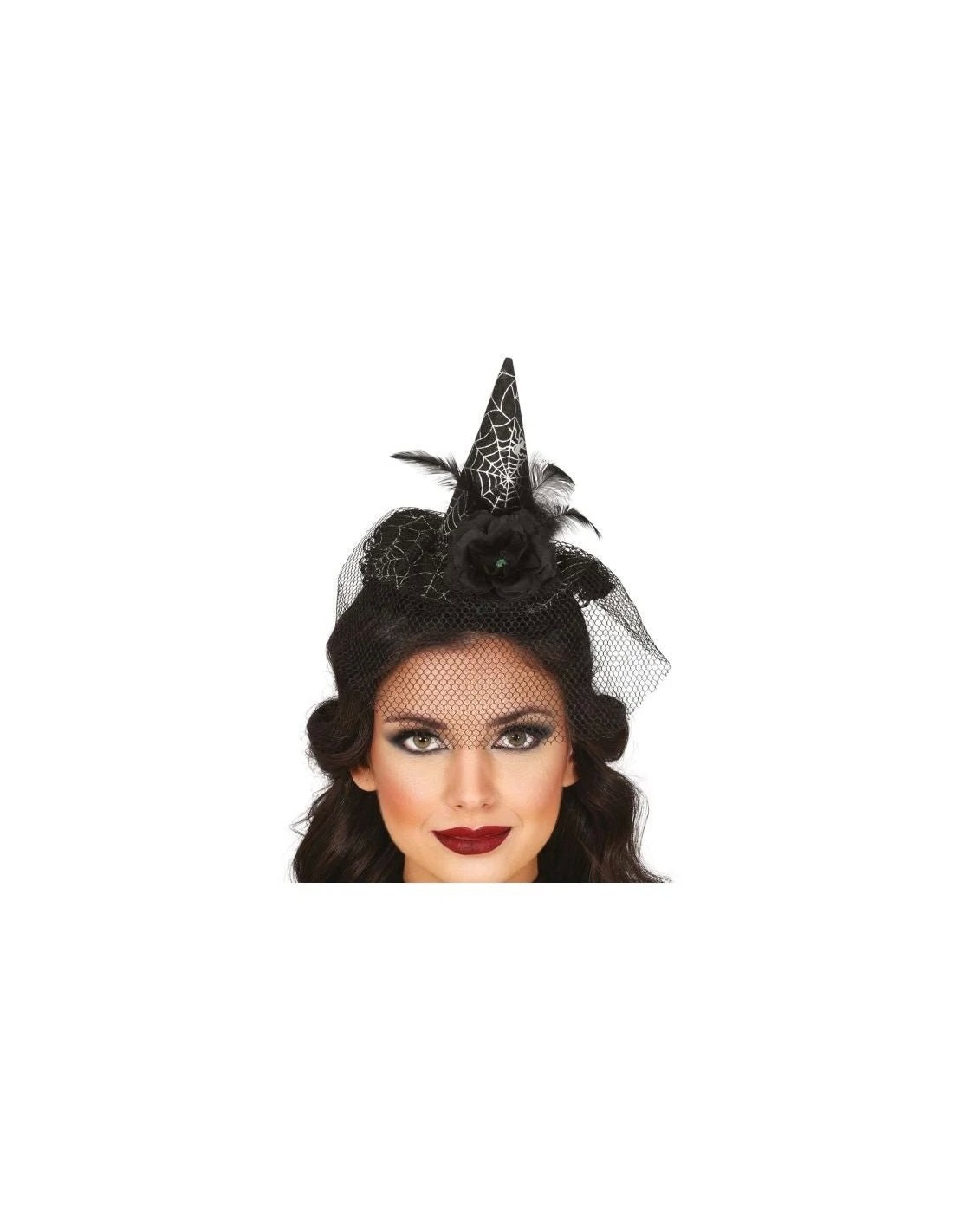 Completa il tuo look da strega con questo affascinante mini cappello decorato con ragnatele, dotato di pratico cerchietto per un perfetto fissaggio e velo nero per un tocco di mistero. Il design presenta dettagli di ragnatele argentate che creano un effetto spettrale, mentre il velo aggiunge eleganza e fascino gotico. Il cerchietto assicura una vestibilità comoda e stabile per tutta la durata della festa. Perfetto per trasformarti nella strega più affascinante della serata.