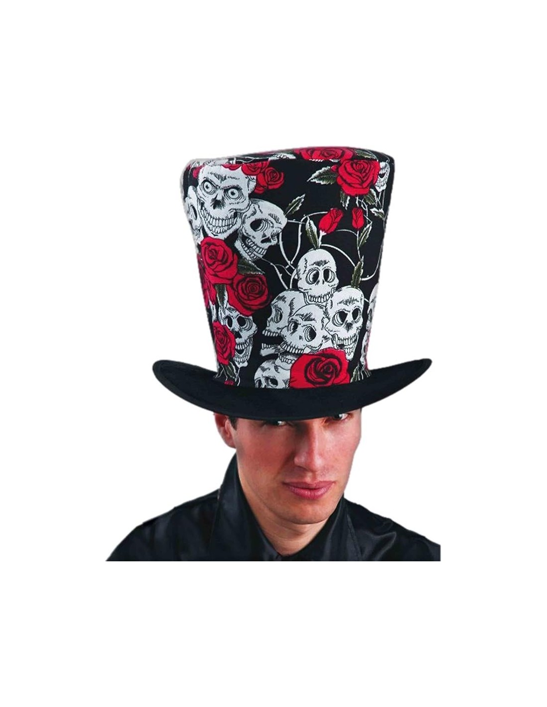 Questo elegante cilindro nero presenta un design alternativo e gotico con stampe di teschi bianchi e rose rosse su fondo nero. Il cappello è realizzato in tessuto e mantiene la forma classica del cilindro tradizionale, reinterpretato in chiave dark. La fantasia con teschi e rose crea un contrasto affascinante tra romantico e macabro, perfetto per chi ama lo stile gotico e alternativo. Il cappello ha dimensioni generose e una struttura resistente che garantisce una vestibilità confortevole.