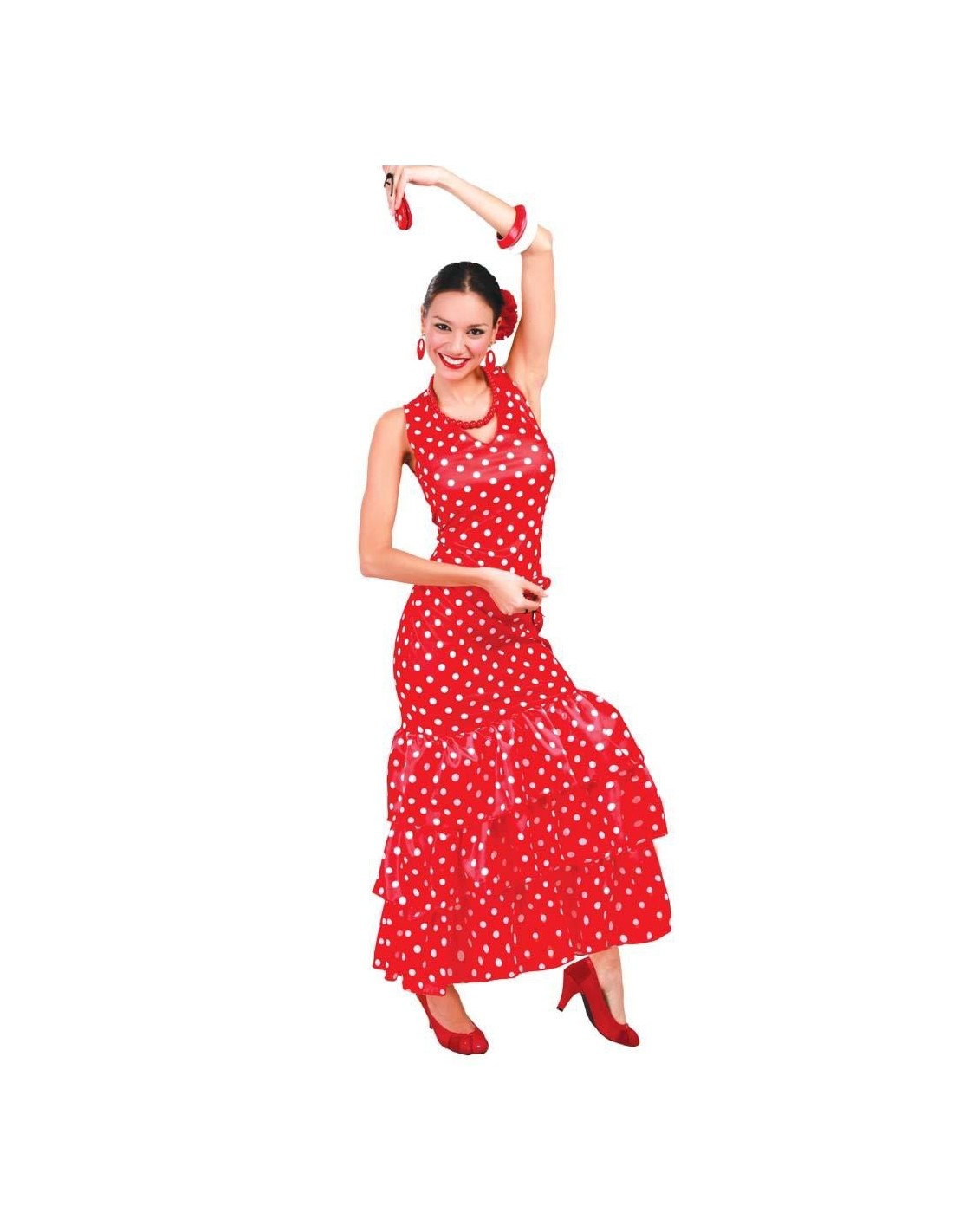 Trasformati in un'autentica ballerina di flamenco con questo splendido costume femminile che cattura tutta la passione della tradizione spagnola. Il vestito presenta un elegante design rosso brillante decorato con romantici pois bianchi, realizzato con materiali di qualità che garantiscono comfort e una perfetta vestibilità. Disponibile in taglia unica M, questo costume da donna ricrea fedelmente lo stile classico delle danzatrici andaluse con la caratteristica gonna lunga e svasata che si muove elegantemente ad ogni passo. Il costume comprende il vestito completo, perfetto per regalare un look autentico e affascinante.