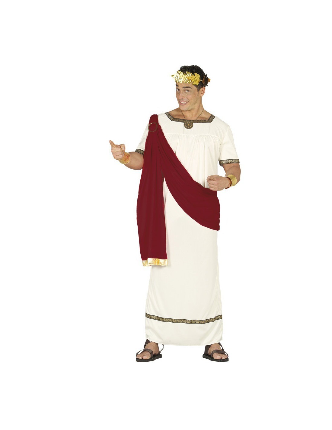 Trasformati nel più famoso imperatore romano con questo magnifico costume da Cesare Augusto. Il set comprende una elegante toga bianca con bordi dorati decorativi e un mantello rosso imperiale che conferisce maestosità al look. La corona dorata con foglie di alloro completa perfettamente l'insieme, ricreando l'iconico aspetto dell'imperatore. Il costume include tunica, mantello e corona. I sandali non sono inclusi nel set.