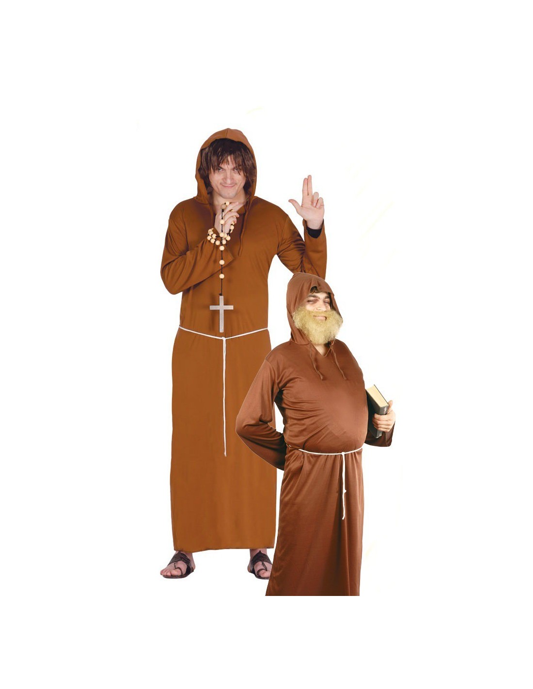 Il costume da frate in tessuto marrone è perfetto per trasformarsi in un monaco medievale. Il set comprende una lunga tunica con cappuccio, decorata con una croce bianca sul petto e completata da un cordoncino in vita che dona autenticità al look. Il tessuto morbido e la vestibilità comoda permettono di indossare il costume per tutta la durata dell'evento. Il design classico richiama fedelmente l'abbigliamento dei frati medievali, rendendolo ideale per rappresentazioni storiche e feste a tema.
