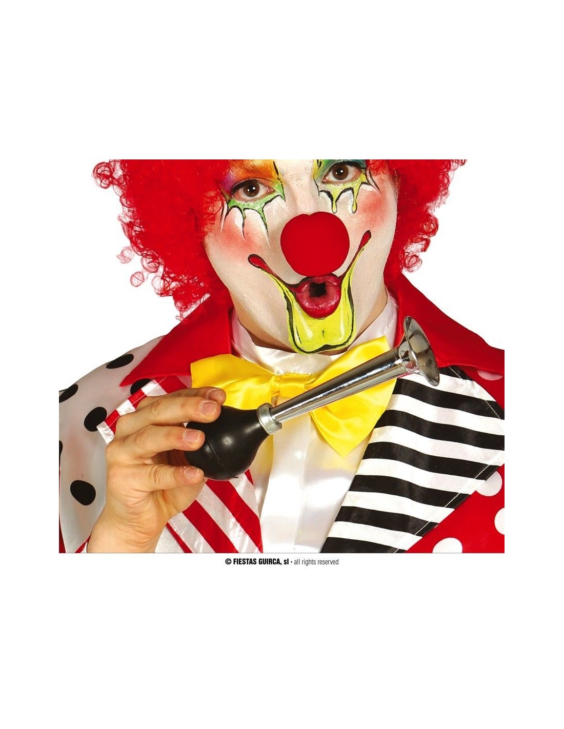 La trombetta da clown è l'accessorio immancabile per completare il tuo travestimento circense e animare ogni festa. Questo strumento musicale giocattolo produce il caratteristico suono nasale che identifica i clown di tutto il mondo. Realizzata con corpo metallico lucido e bulbo in gomma nera, è perfetta per aggiungere un tocco di allegria e divertimento al tuo costume. Facile da usare, basta premere il bulbo per ottenere il tipico suono comico che farà ridere grandi e piccini.