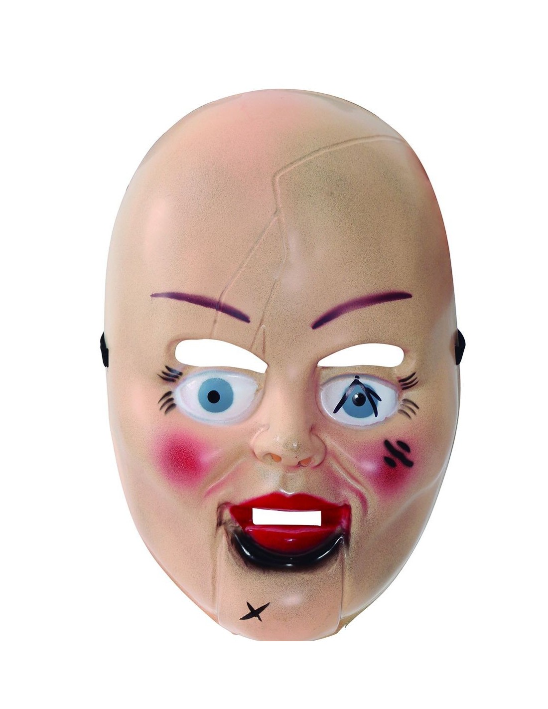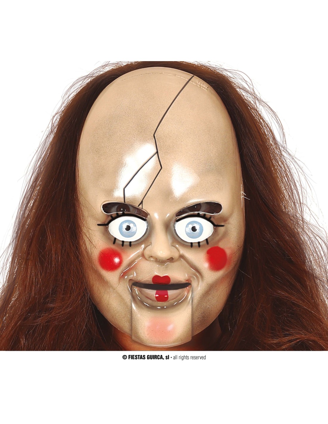 La Maschera Bambola spaventosa trasforma il tuo volto in un inquietante personaggio horror perfetto per le notti di Halloween più terrificanti. Questa maschera presenta un volto dalla carnagione pallida con grandi occhi azzurri penetranti, guance arrossate, cicatrici cucite e un sorriso malefico che metterà i brividi a chiunque ti incontri. Realizzata in materiale resistente, copre completamente il viso garantendo un effetto spaventoso immediato. Il design dettagliato include sopracciglia marcate e segni distintivi che rendono questa bambola particolarmente inquietante.