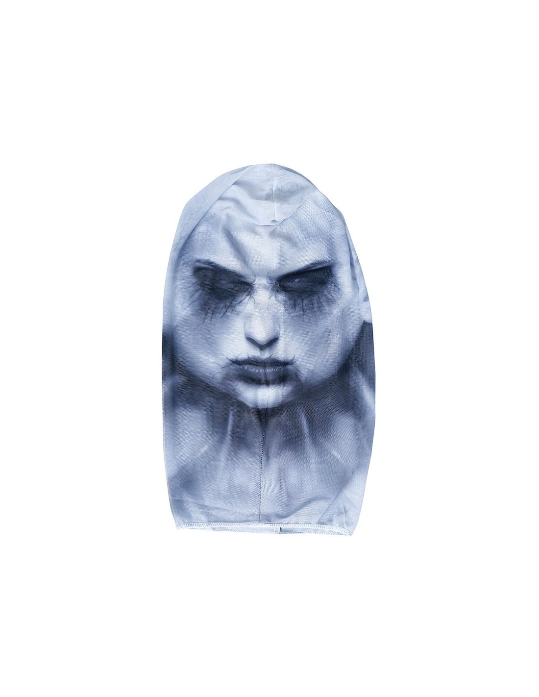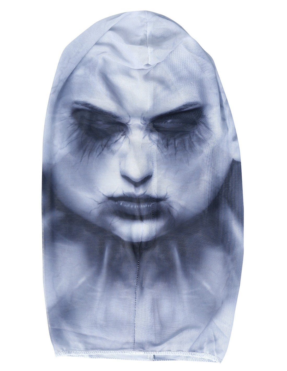 La maschera cappuccio mostro del terrore trasforma chiunque la indossi in una creatura dell'incubo. Il design presenta un volto spettrale dalla pelle pallida e cadaverica, con occhi infossati e lineamenti deformati che incutono terrore. Il cappuccio integrato avvolge completamente testa e collo, creando un effetto fantasmagorico inquietante. Realizzata in materiale morbido e flessibile, garantisce una vestibilità confortevole permettendo una visibilità adeguata attraverso le aperture oculari.